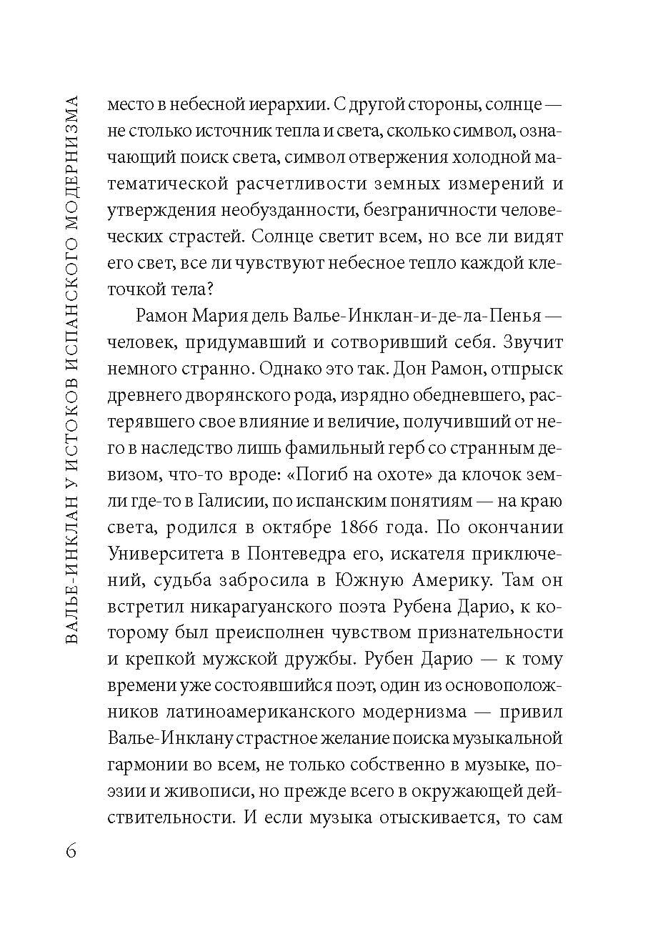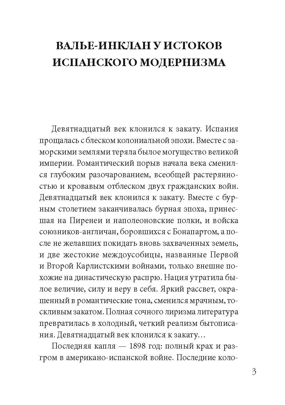 Рамон Мария дель Валье-Инклан-и-де-ла-Пенья (1866-1936) принадлежит к так называемому «поколению катастрофы», т. е. к группе писателей, расцвет литературной деятельности которых относится к эпохе, непосредственно следовавшей за испано-американской войной 1898-1899 годов. Начав с анархизма, Валье-Инклан с течением времени сделался защитником идей «церкви, родины и короля». Он выражает настроения той части испанской интеллигенции - главным образом, клерикально настроенных городских кругов - которая видит спасение Испании в возвращении к «чистым» традициям испанского средневековья и Возрождения. Любимым героем писателя является маркиз де Брадомин, главное действующее лицо его «Сонат» - современный Дон-Жуан, некрасивый, католически настроенный и сентиментальный. В этой романтической фигуре Валье-Инклан хотел воскресить традиционный тип «испанского идальго».