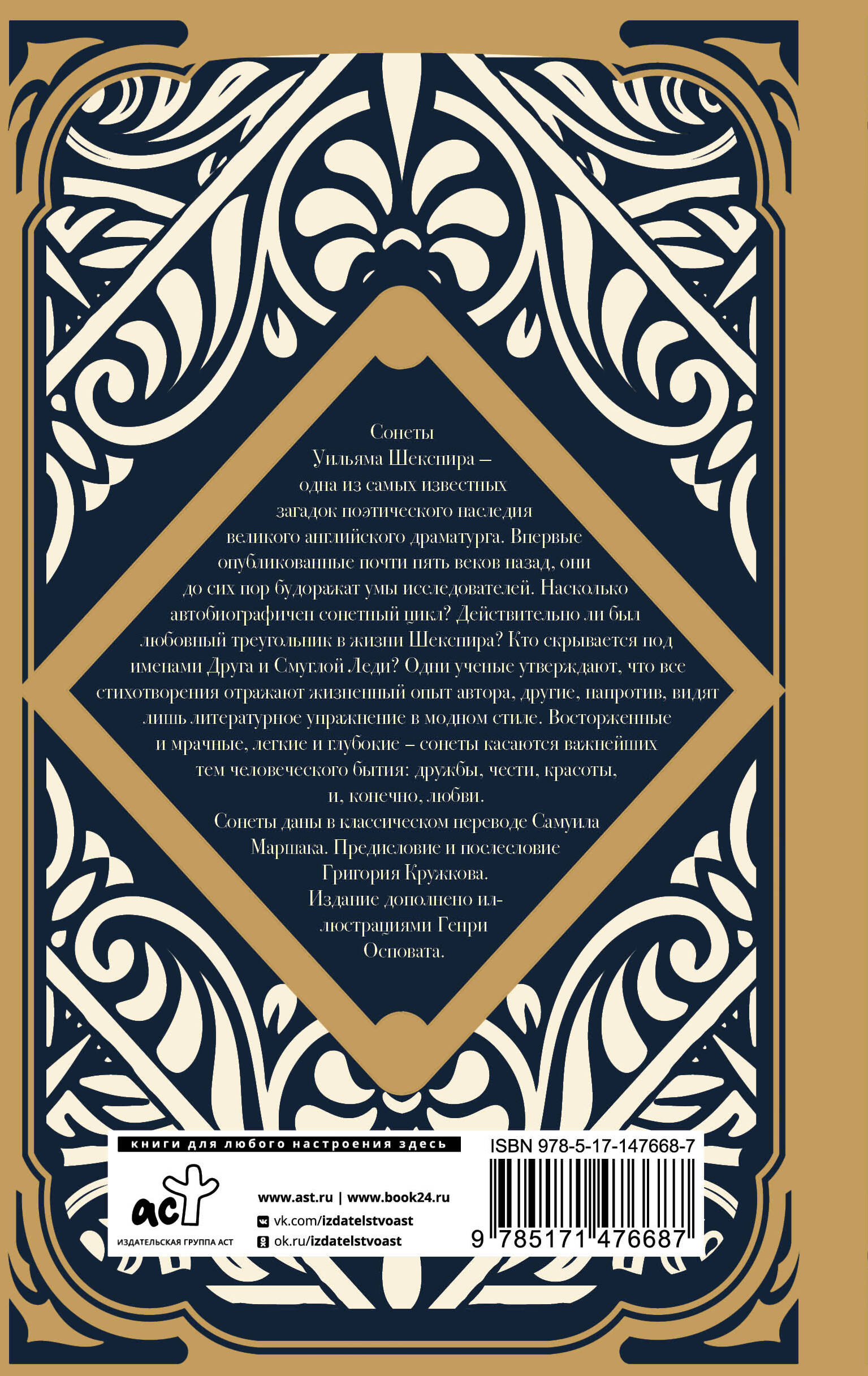 Сонеты Уильяма Шекспира - одна из самых известных загадок поэтического наследия великого английского драматурга. Впервые опубликованные почти пять веков назад, они до сих пор будоражат умы исследователей. Насколько автобиографичен сонетный цикл? Действительно ли был любовный треугольник в жизни Шекспира? Кто скрывается под именами Друга и Смуглой Леди? Одни ученые утверждают, что все стихотворения отражают жизненный опыт автора, другие, напротив, видят лишь литературное упражнение в модном стиле. Восторженные и мрачные, легкие и глубокие - сонеты касаются важнейших тем человеческого бытия: дружбы, чести, красоты, и, конечно, любви. Сонеты даны в классическом переводе Самуила Маршака. Предисловие и послесловие Григория Кружкова. Издание дополнено иллюстрациями Генри Осповата.| Издательство | АСТ |