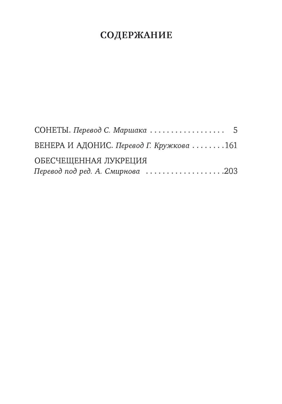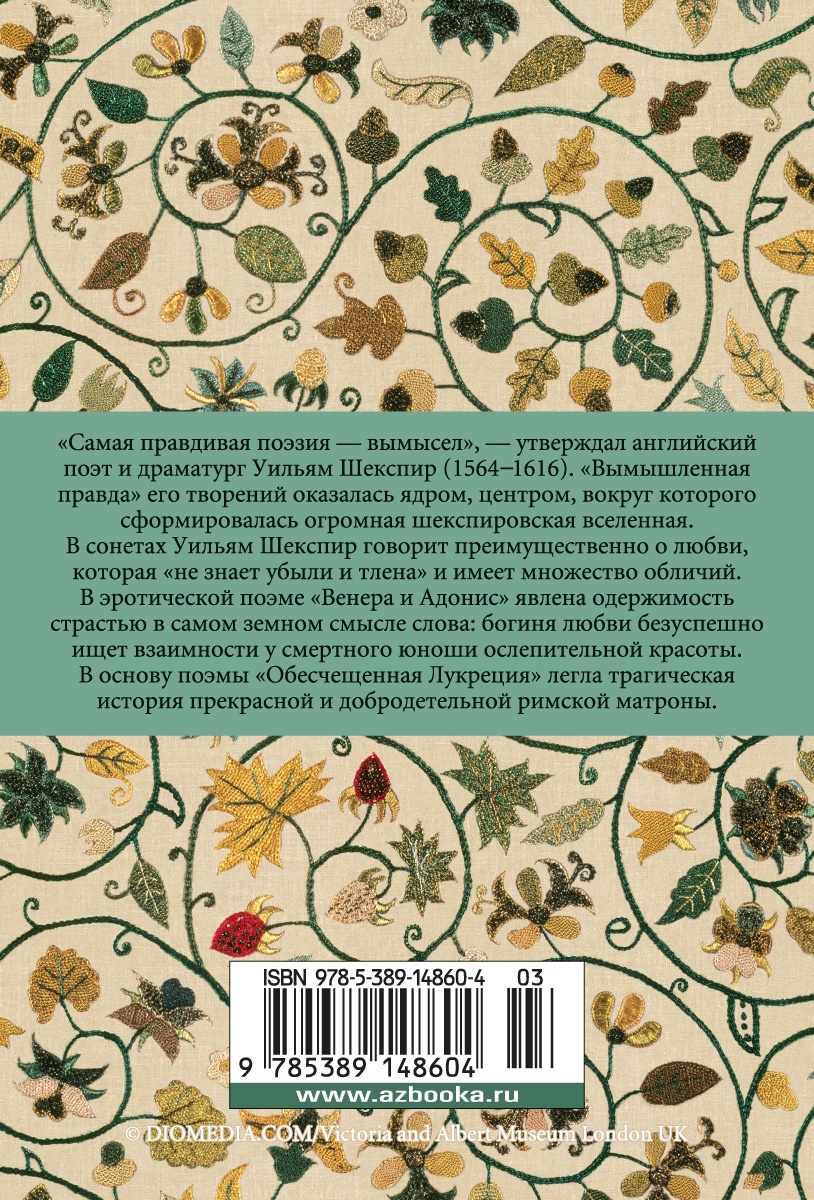 «Самая правдивая поэзия - вымысел», - утверждал английский поэт и драматург Уильям Шекспир (1564-1616). «Вымышленная правда» его творений оказалась ядром, центром, вокруг которого сформировалась огромная шекспировская вселенная. В сонетах Уильям Шекспир говорит преимущественно о любви, которая «не знает убыли и тлена» и имеет множество обличий. В эротической поэме «Венера и Адонис» (1593; Шекспир называл ее «первенцем моей фантазии») явлена одержимость страстью в самом земном смысле слова: богиня любви безуспешно ищет взаимности у смертного юноши ослепительной красоты. В основу поэмы «Обесчещенная Лукреция» (1594) легла трагическая история прекрасной и добродетельной римской матроны. Поэтические опыты молодого Шекспира и сонеты, с их мудрой лаконичностью, позволят современному читателю составить более полное представление о творчестве великого английского мастера.| Издательство | Азбука |