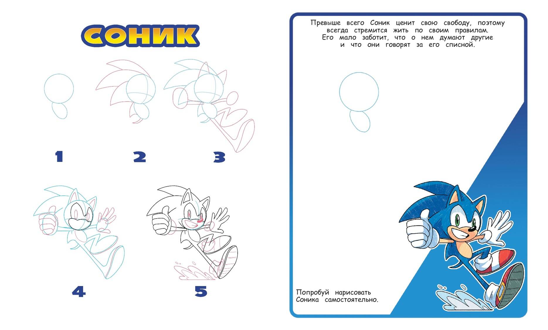 Если тебе хочется провести время в компании легендарных супергероев, то эта книга точно для тебя! Научись рисовать Соника, самого быстрого и самого популярного Ежа во всей Вселенной, и всех его друзей. Простые пошаговые инструкции помогут тебе стать настоящим иллюстратором! Благодаря небольшому формату книгу удобно брать с собой в дорогу - когда тебе захочется порисовать, она всегда будет под рукой! А если ты не знаешь, что подарить другу, который, как и ты, обожает Соника, то эта яркая раскраска-самоучитель станет крутым подарком на день рождения и любой другой праздник. Рисуй, раскрашивай и будь креативным!| Издательство | ООО "Издательство "Эксмо" |
