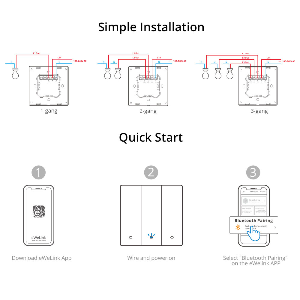 - Many ways of operation - The wall switch from Sonoff offers the possibility of operation in 3 ways - classic (manual), voice and via the eWeLink application.