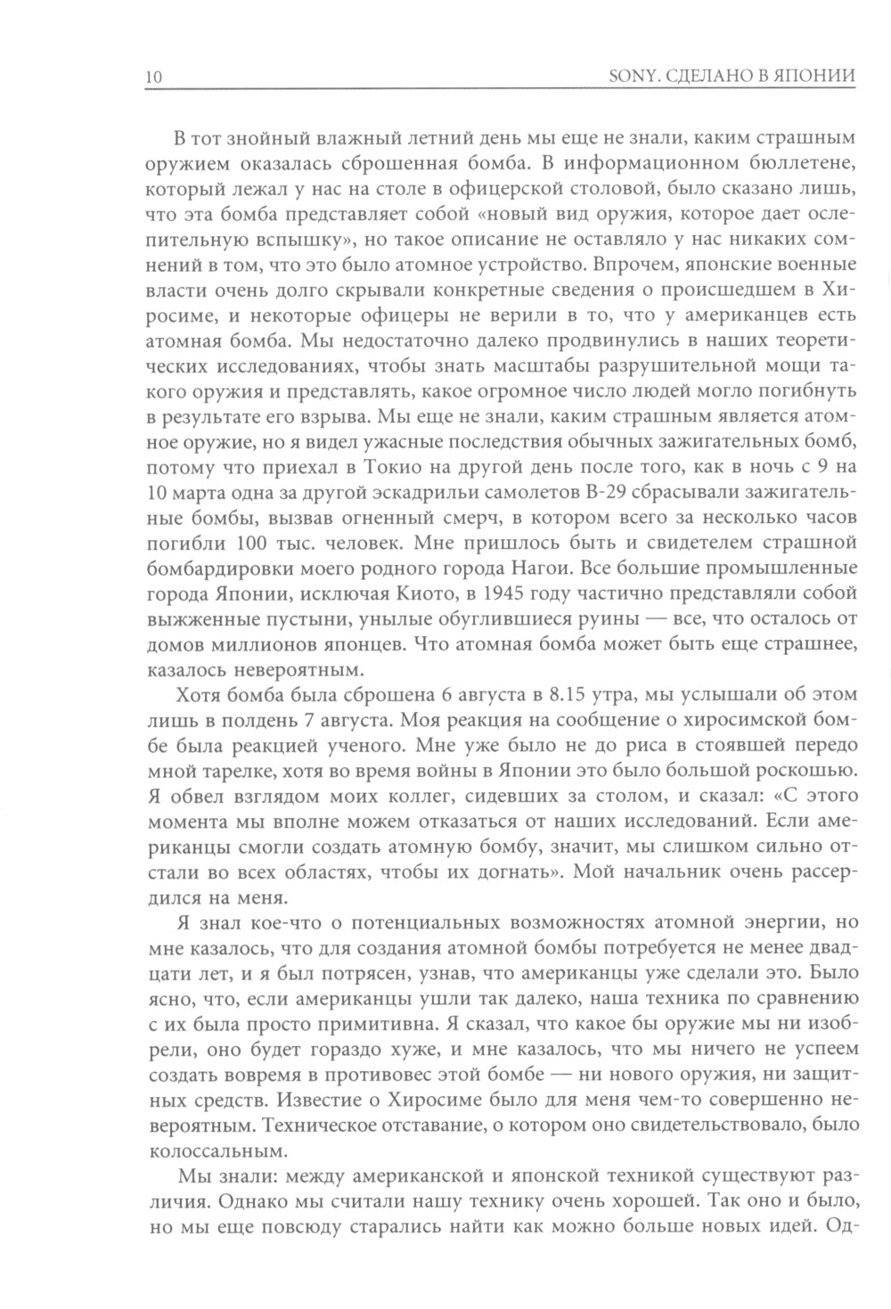 Сегодня трудно представить мировой рынок бытовой радиоэлектроники без техники производства Sony. Автор, один из основателей корпорации Sony, рассказывает об истории компании, о разработке плеера Walkman, видеомагнитофона Betamax, компакт-диска и других уникальных изобретениях. В книге подробно рассказано о взаимоотношениях крупного бизнеса с государством, профсоюзами, конкурентами, о характерных чертах японского менеджмента, в частности о восприятии корпорации как родной семьи и т.п. В условиях послевоенной Японии практически все, даже управленческие подходы, Морите пришлось создавать с нуля, формируя новую предпринимательскую культуру и традиции. Книга рассчитана на широкий круг читателей.
