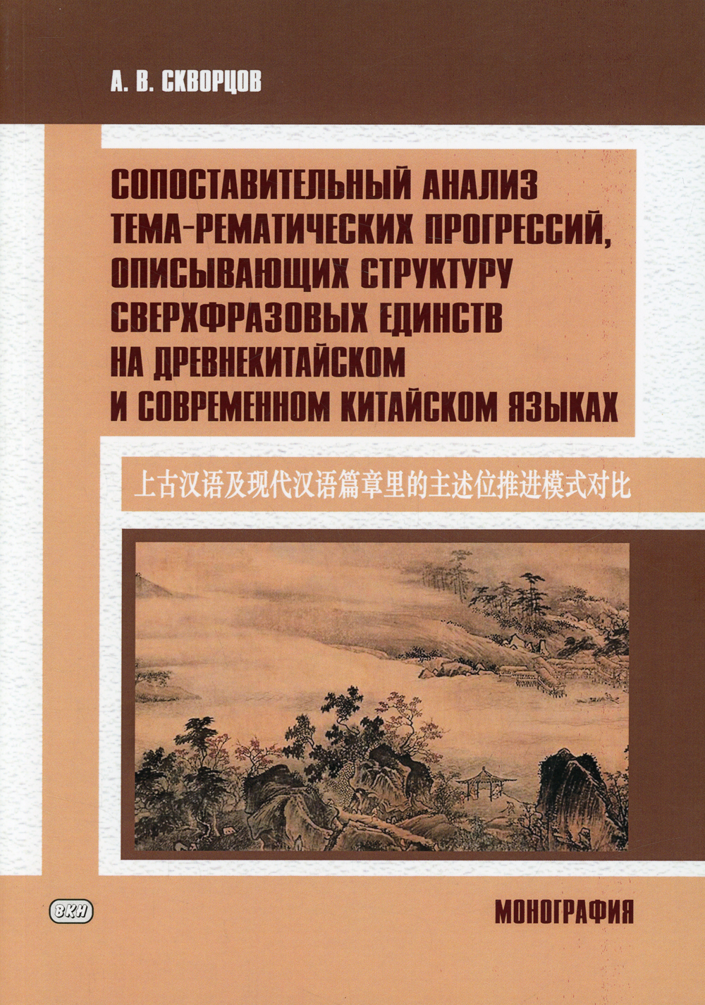 Настоящая монография посвящена сравнительному анализу структуры сверхфразовых единств на древнекитайском и современном китайском языках. При этом сверхфразовому единству ставится в соответствие та или другая тема-рематическая прогрессия согласно теории актуального членения, основы которой заложены представителями Пражской лингвистической школы (В. Матезиус, Ф. Данеш, Ян Фирбас). Обсуждаются частные случаи вычленения темы или ремы из предложений на китайском языке. Формульное описание структуры сверхфразовых единств сопровождается анализом средств связности, в них использованных. Показано, что излагаемая в настоящей работе методика применима для структурного анализа фрагментов, написанных на языках самых разных типов, в том числе на русском, английском, современном китайском и древнекитайском. При анализе сверхфразовых единств на древнекитайском языке используются примеры из «Мэн-цзы», «Лунь юя» и «Дао дэ цзина». При разборе структуры фрагментов на современном китайском языке в качестве языкового материала выбран роман «Сяо-ай» (автор - Чжан Айлин). Книга будет полезна магистрантам и аспирантам, занятым исследованиями в области синтаксиса китайского языка, а также студентам старших курсов, изучающих дисциплину «Основы классического китайского языка вэньянь». Работа представляет собой переиздание магистерской диссертации, защищенной автором в Цзилиньском университете (г. Чанчунь, КНР) в 2014 году.| Издательство | Восточная книга |