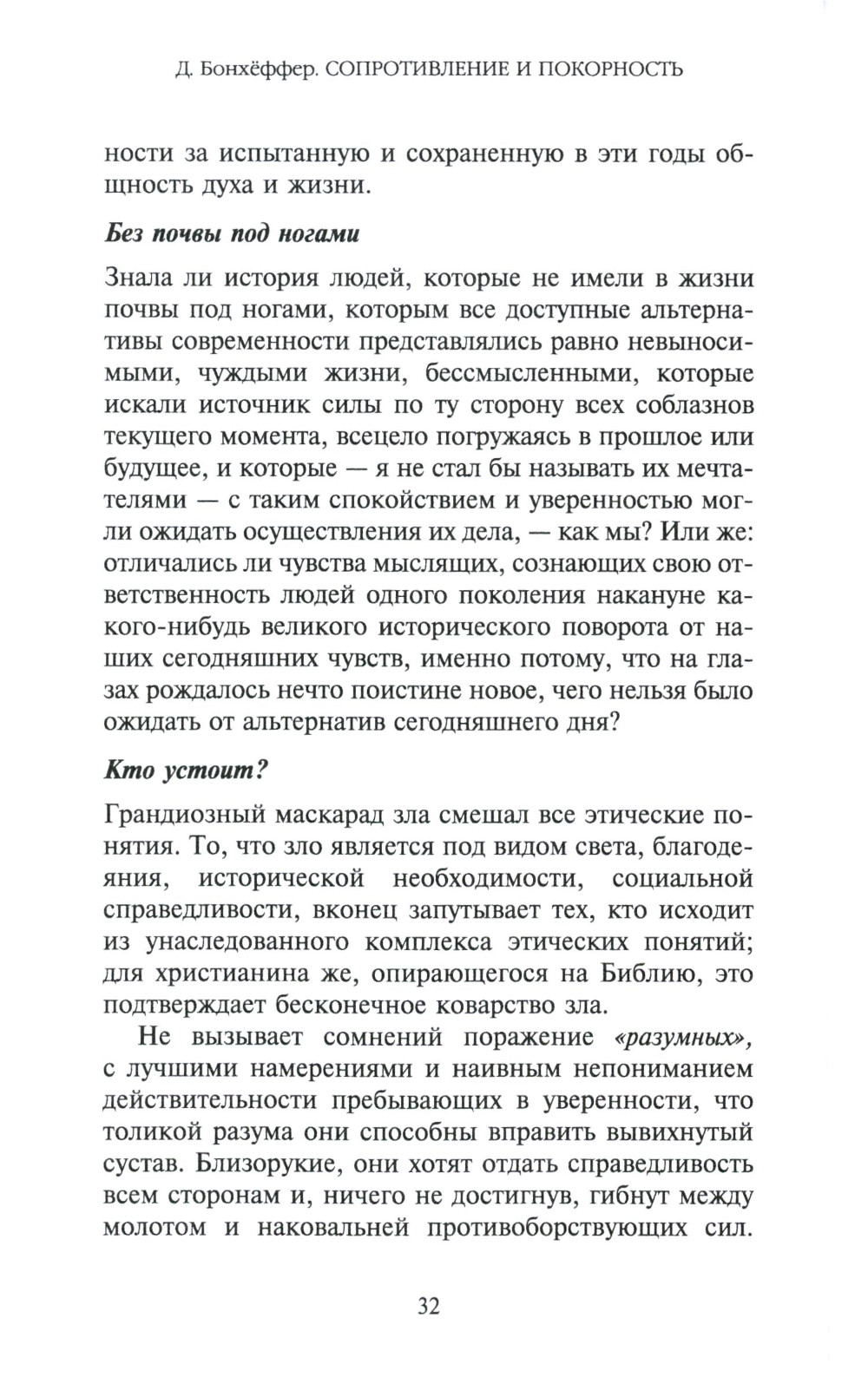 «Сопротивление и покорность» - сборник писем из заключения в тюрьмах гестапо, написанных в последние годы жизни Дитрихом Бонхёффером, выдающимся немецким теологом, пастором и участником антинацистского сопротивления. В них Бонхёффер раскрывается не только как богослов и проповедник, но и как человек и христианин, в самых тяжелых обстоятельствах явивший собой образец мужественного, ответственного и любящего отношения к Богу, миру и ближним. Настоящее издание приурочено к 80-летию со дня трагической гибели Бонхёффера 9 апреля 1945 года, за месяц до конца Второй мировой войны.| Издательство | ГРАНАТ |
