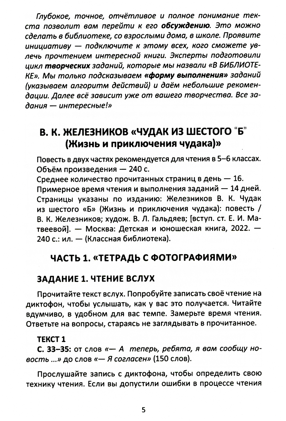 Пособие является специальным приложением с ответами для совместной работы взрослых (педагогов, библиотекарей или родителей) и детей с текстом одноимённого произведения из книги «В. Железников «Чудак из шестого "Б"» издательства «Детская и юношеская книга».| Издательство | Детская и юношеская книга |