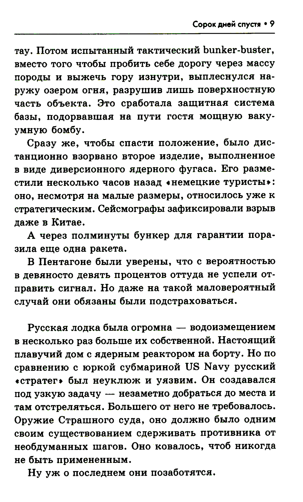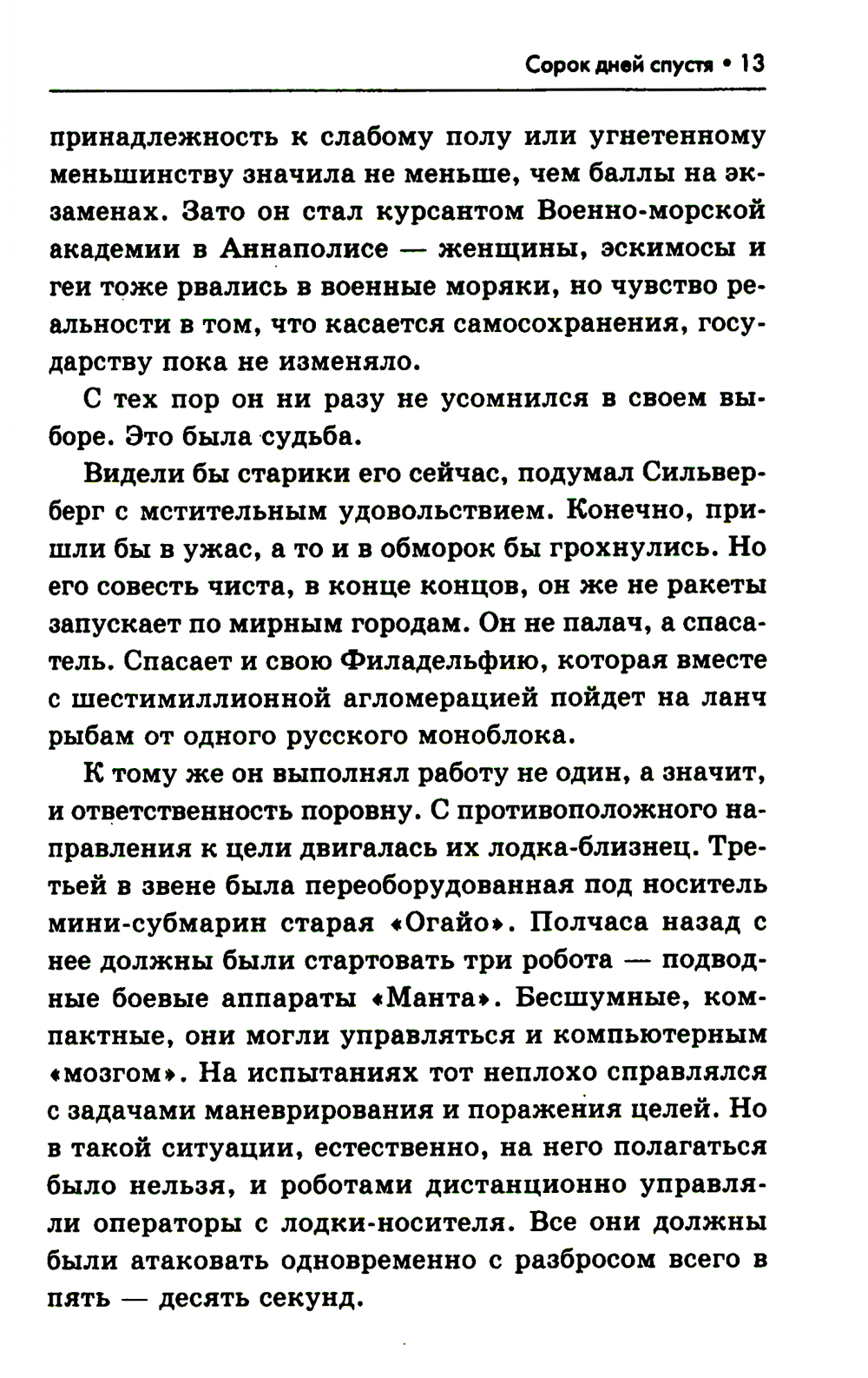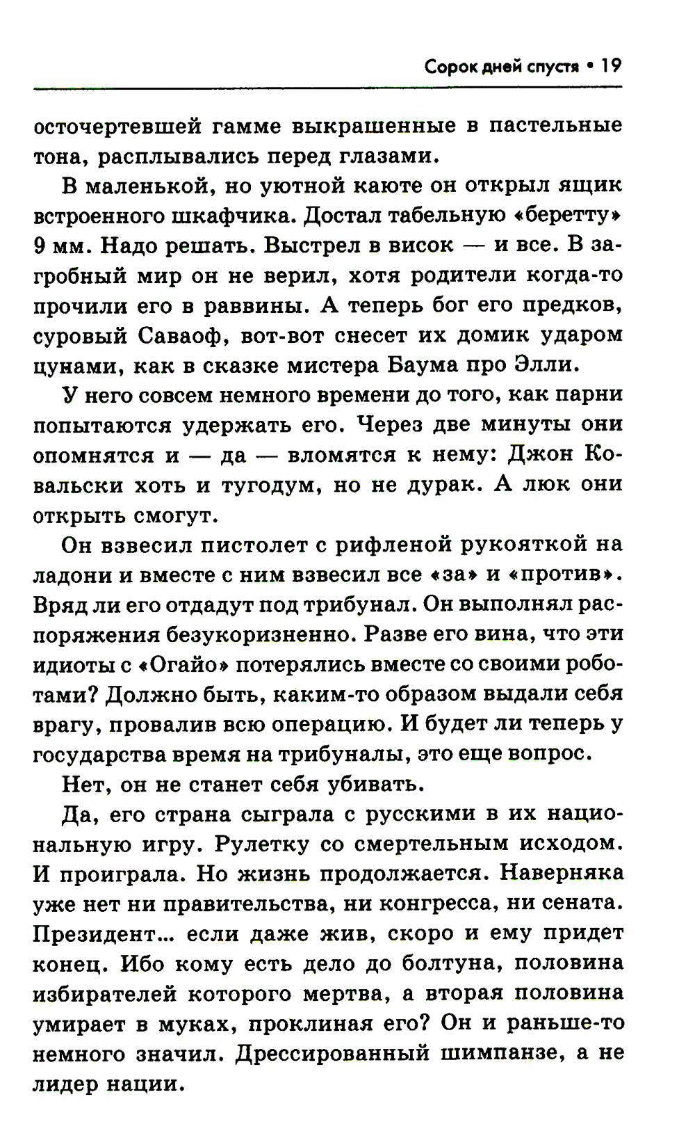 Люди заслужили свой Черный День. И Черный День настал. За несколько часов человечество распяло само себя, превратив цветущую планету в ледяной ад. Не остановилось только время. И вот со дня, когда взмыли в небо первые крылатые ракеты и взбухли первые ядерные грибы, минуло сорок дней... Раньше считалось, что самое живучее существо на планете - таракан и только тараканы переживут атомную войну и приспособятся к ядерной зиме. Оказалось, люди не менее живучи. Люди способны выживать в условиях, когда любой таракан давно бы сдох. Когда температура минус сорок. Когда сгорела пятая часть лесов на планете и в атмосфере осталось мало кислорода. Когда запасы продовольствия иссякают, а новое взять неоткуда. Когда уже не во что верить. Однако ты еще жив. Пусть последняя банка тушенки пуста, а патронов осталось только на то, чтоб с гарантией вышибить себе мозги, но твой дух не сломлен. И ты еще поборешься...| Издательство | Крылов |