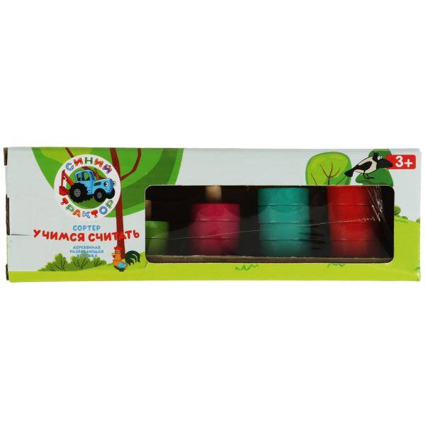 Развивающая деревянная игрушка-сортер "Синий Трактор. Учимся считать" ТМ "Буратино" непременно понравится маленьким любознайкам: - экологичный материал - оригинальный дизайн - счётный материал - учимся считать до 5 - сортируем по цветам Данная игра состоит из основы с 5-ю палочками и разноцветных шайб 5 цветов. Задача ребёнка - на каждый столбик нанизывать определённое количество шайб от 1 до 5, распределяя их также в группы по цветам, в результате получая 5 разноцветных пирамидок с нарастающим количеством шайб. Благодаря этому сортеру малыш легко освоит счёт до 5 и научится сортировать детали по цветам. Играя с деревянной игрушкой ТМ "Буратино", ребёнок будет также развивать: - логику - мелкую моторику - ловкость - координацию движений Размер: 22 х 0,9 х 5 см. Материал: дерево + бумага + полимеры. Рекомендовано детям от 3-х лет.| Издательство | С-Маркет ООО |