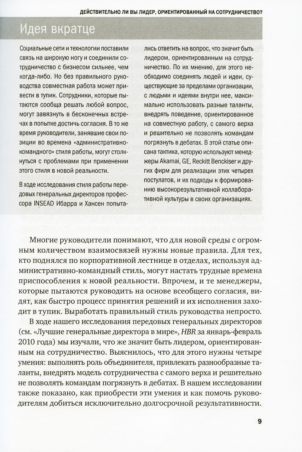 Harvard Business Review - главный деловой журнал в мире. Новый выпуск серии «HBR: 10 лучших статей» посвящен вопросам сотрудничества внутри компании. Если вы хотите, чтобы разные подразделения в вашей корпорации помогали друг другу, чтобы между ними было взаимопонимание и бизнес-процессы шли наилучшим образом, эта книга для вас. Следуя рекомендациям авторов, вы поможете коллегам найти общий язык и обойти возможные подводные камни нового формата взаимодействия. А главное, вы поймете, почему так важно, чтобы атмосфера сотрудничества в организации поддерживалась в первую очередь руководством компании, а не только ее работниками.| Издательство | Альпина Паблишер |