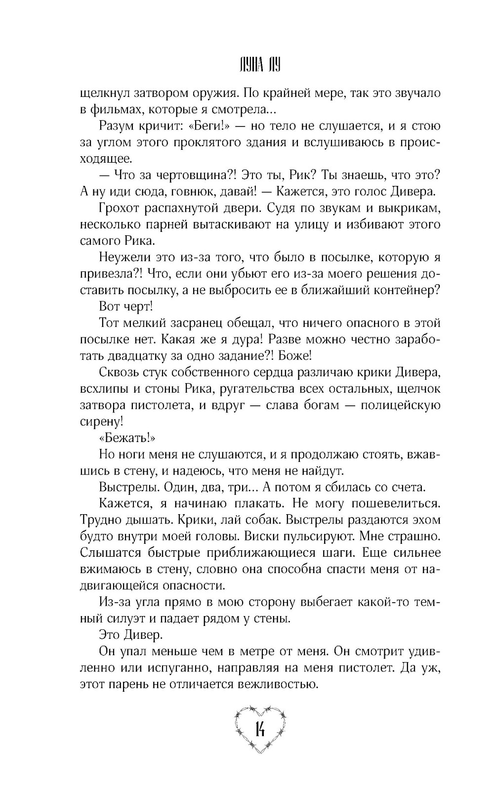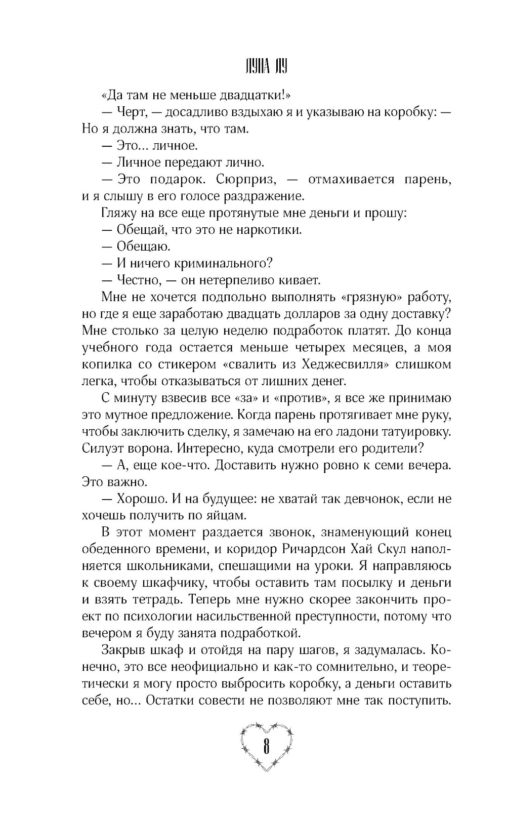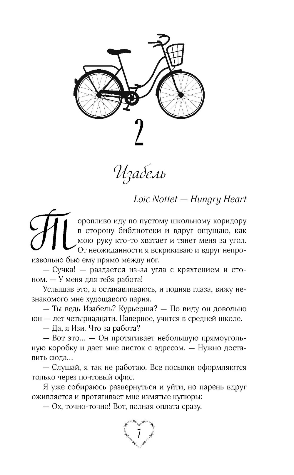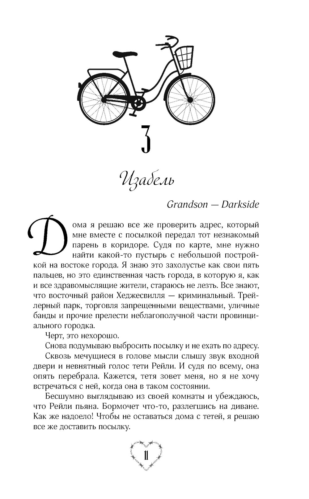 После трагических событий прошлого Изабель не может найти себе места в родном городе. В попытке сбежать от собственных демонов, она принимает решение переехать и поступить в колледж. Чтобы накопить денег, девушка начинает подрабатывать курьером. Изабель уверенно идет к своей цели, пока однажды ее не просят отвезти посылку в неблагополучный район, где она становится свидетельницей преступления и встречает Нейтана. Парня, который держит в страхе весь город. Он угрожает девушке, из-за чего ей приходится ступить на скользкую дорожку и стать соучастницей в его игре. Но с каждым днем она все больше сближается с таинственным привлекательным парнем, понимая, что ее сердце учащенно бьется уже не от страха, а от любви…| Издательство | Эксмо |
