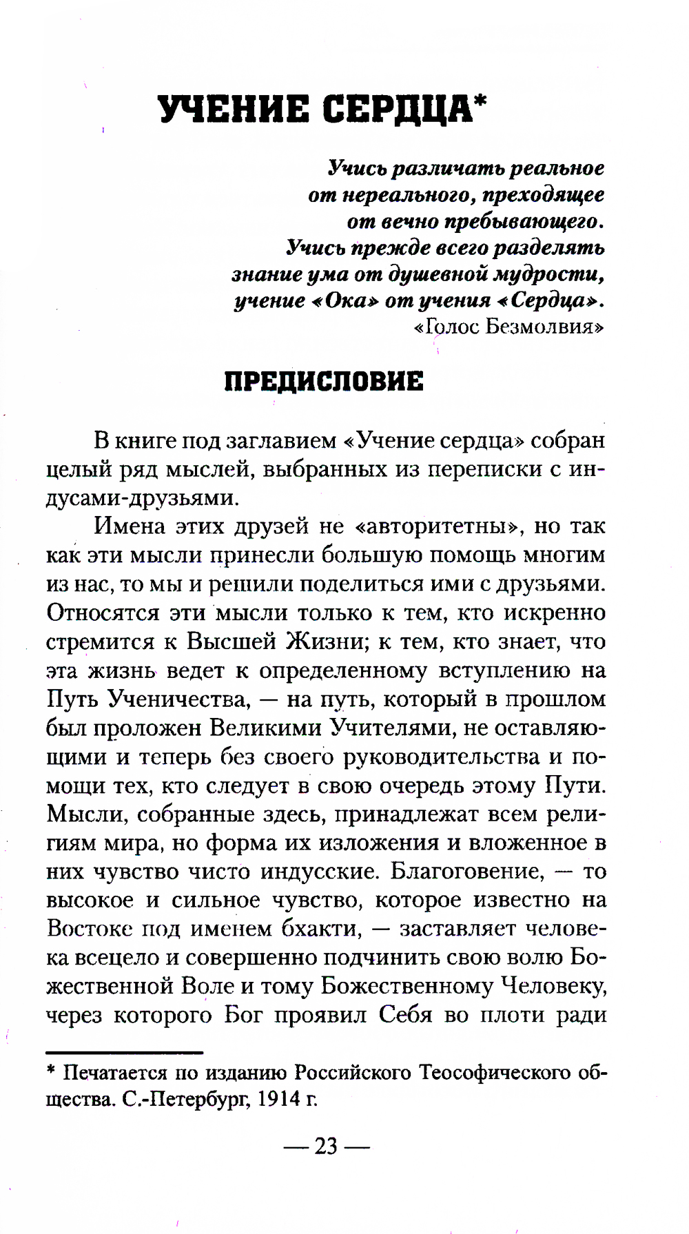 В данный сборник включены работы, написанные Анни Безант (1847-1933) - талантливой писательницей, президентом Теософского Общества, ученицей и последовательницей Е. П. Блаватской: 1) «Учение сердца» (печатается по изданию Российского Теософского общества. С.-Петербург, 1914 г.); 2) «Путь ученичества. Пять лекций, прочитанных в Адьяре в 1895 году» (перевод с английского А. А. Каменской (1867-1952)); 3) «Путь к посвящению» и 4) «Совершенный человек». Эти произведения рассказывает о длительном и трудном пути восхождения учеников к духовным вершинам. Они повествуют о Карма-йоге, об очищении души и тела, о контроле над мыслями, о медитации, об испытаниях и посвящениях. А также о методах науки будущего и о возможных направлениях и тенденциях развития человеческой цивилизации. Автор говорит читателю: «Я постараюсь объяснить, каким образом обыкновенный человек, имеющий семейные и общественные обязанности, принужденный участвовать в разнообразной жизненной деятельности, может, несмотря на это, приготовить себя к единению, слиянию и сделать первые шаги на пути, ведущему к Единому». Настоящее издание предназначено для всех тех, кто идёт путём духовного развития.| Издательство | Амрита-Русь |