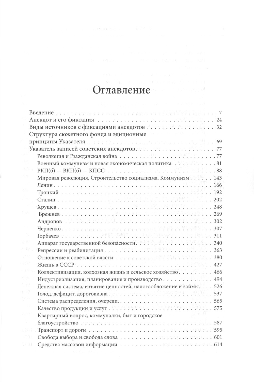 Вниманию читателей предлагается первая научная публикация тематически разнородных анекдотов, имевших хождение в СССР с 1917 по 1991 год. Указатель представляет собой систематизированное собрание записей советских анекдотов. В издание вошли материалы из прессы, эмигрантских сборников, сводок о настроениях населения, доносов, судебных дел, записей фольклористов-любителей, дневников современников и прочих источников. Всего в Указателе 5852 статьи, каждая из которых посвящена одному анекдотическому сюжету. Исследуются теория жанра, особенности бытования анекдота в СССР, прослеживается история заимствований в эмигрантских и постперестроечных публикациях советских политических анекдотов, проанализирована достоверность записей анекдотов в источниках разных видов. Издание снабжено именным и предметным указателями.| Издательство | Новое литературное обозрение |