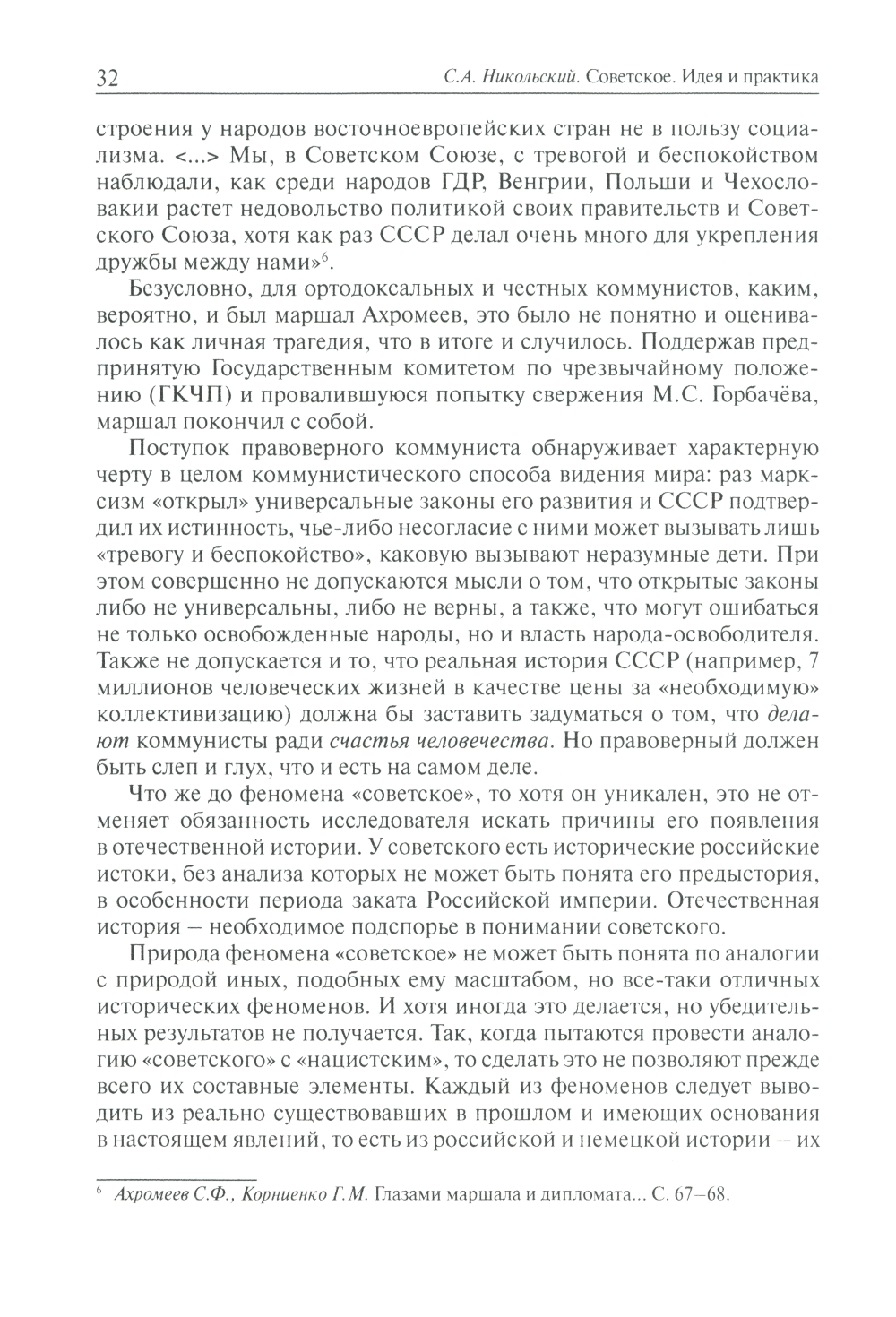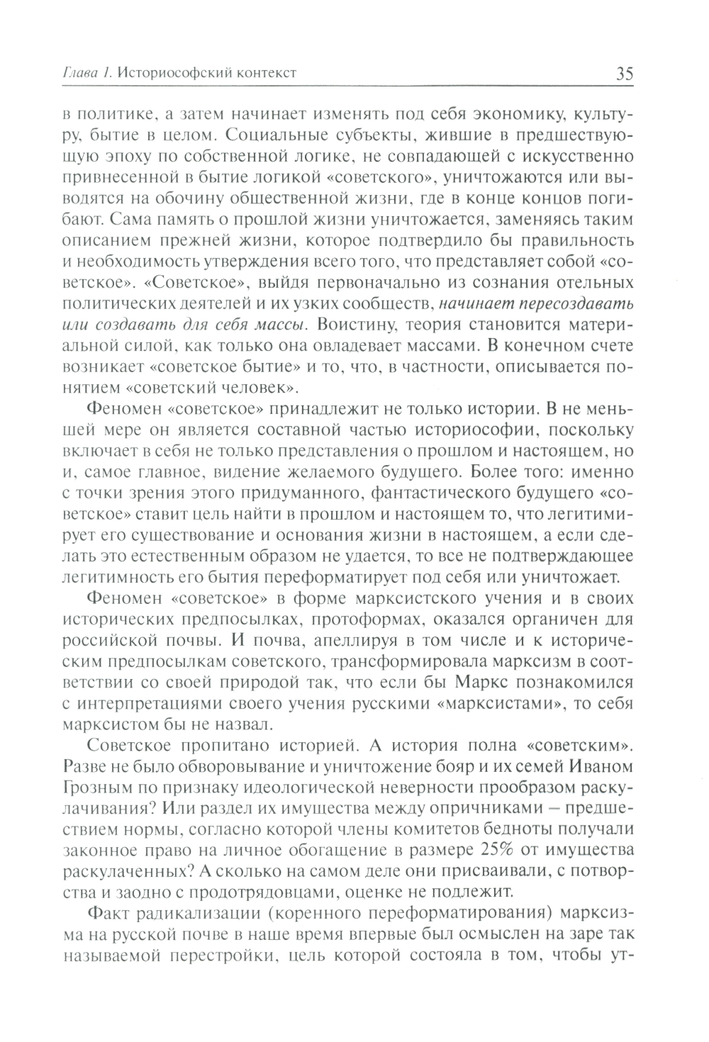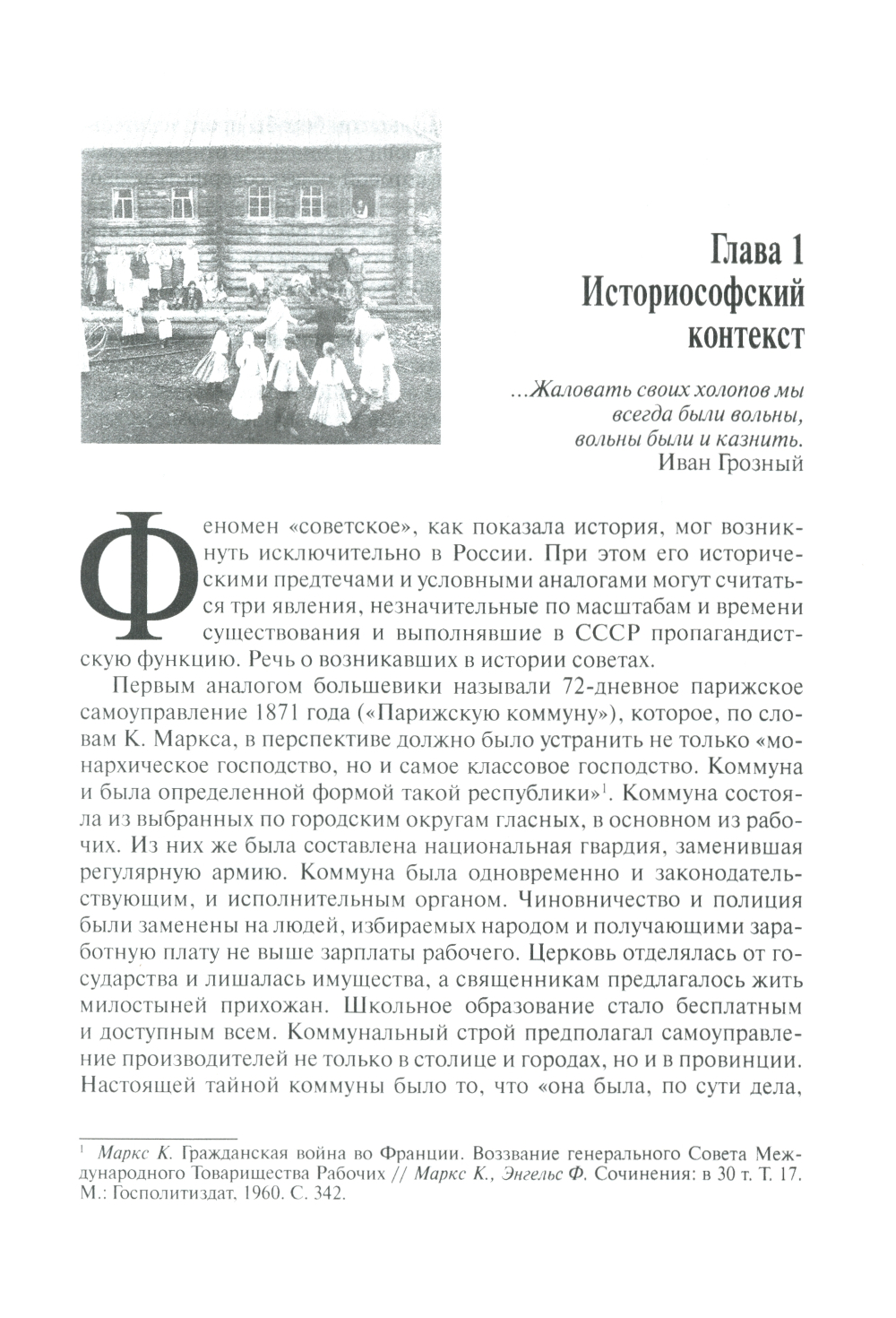 Феномен «советское», возникший в ходе Октябрьского переворота и Гражданской войны, своей основой имел адаптированный к российским реалиям марксизм и русскую «почву», а его главный элемент «советский человек» свою родословную вел с XIX века. С одной стороны, «новый человек» был рукотворным продуктом ленинизма и сталинизма, симбиозом фантазии, веры и фанатизма, с другой - воплощением гуманистических идей раннего Маркса. Ленин и партия «профессиональных революционеров» сорвали Россию с естественной траектории ее развития, предприняли попытку «перескочить» через капитализм и из феодализма шагнуть прямо в коммунизм. Для этого страна в течение семидесяти лет понуждалась к развитию вопреки ее естественной эволюции, но в конце концов надорвалась и разрушилась, что было названо «крупнейшей геополитической катастрофой XX века». В исследовании, отражающем философско-мировоззренческую позицию автора, которую, конечно, разделяют не все исследователи этого явления, феномен «советское» рассматривается в историософском, историческом и политическом аспектах от своего возникновения и до окончания Второй мировой войны. Что до его рассмотрения в литературнохудожественном и социально-философском аспектах, то оно в следующей книге-продолжении «Советское. Философско-литературный анализ». Обе монографии ориентированы на молодежь, а также на читателей, живших во времена СССР, как относящихся к советскому прошлому критически, так и ностальгирующих об ушедшем времени в сегодняшнем постсоветском бытии.