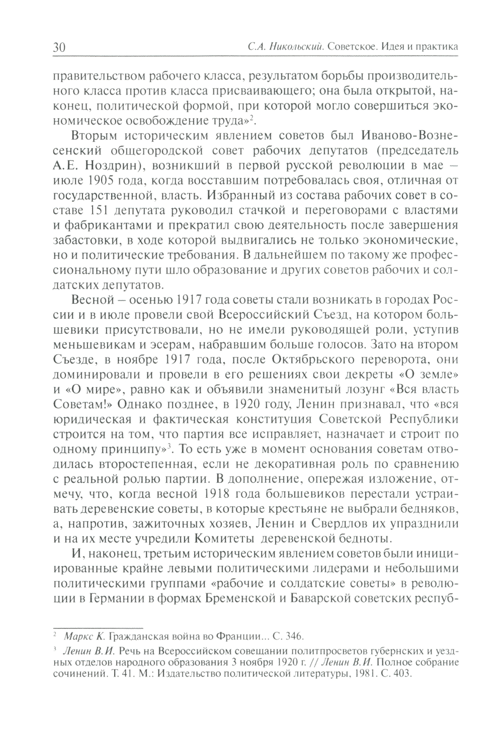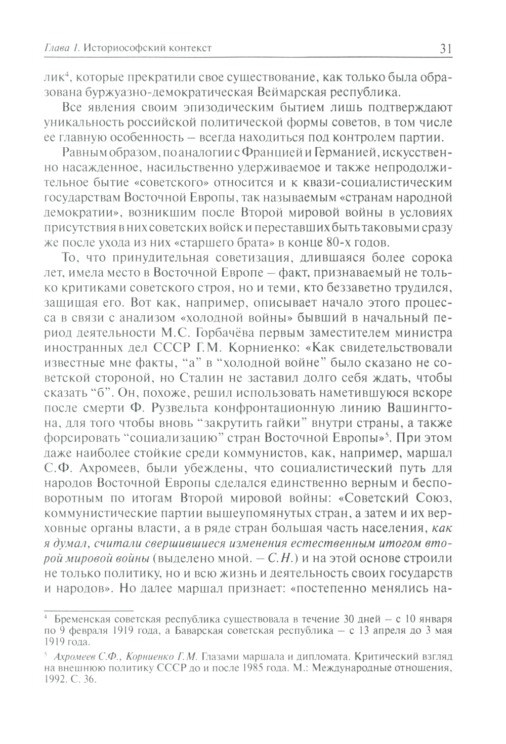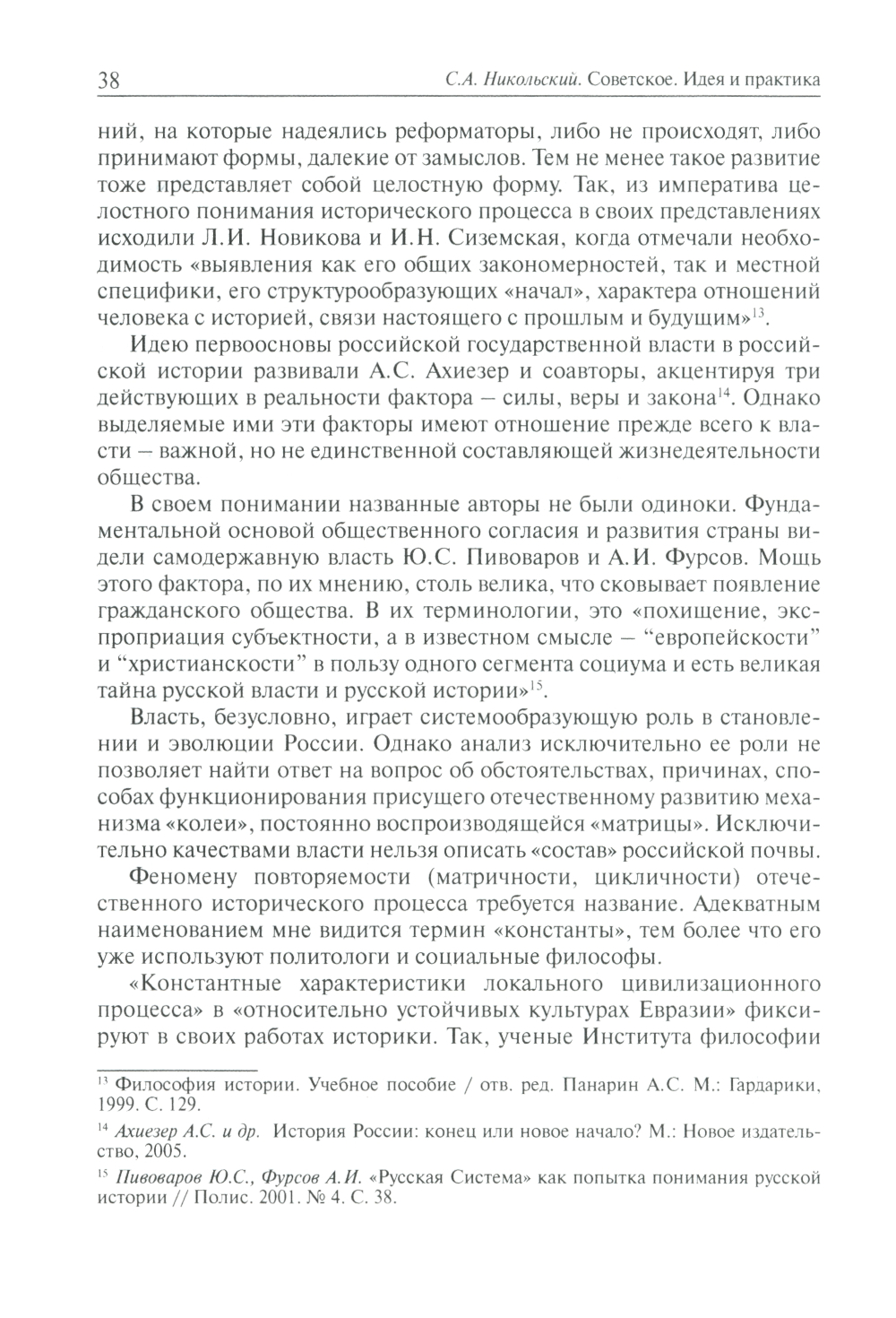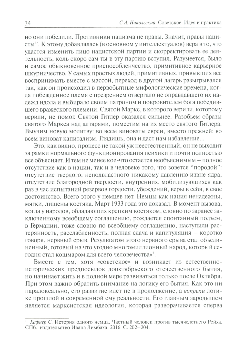 Феномен «советское», возникший в ходе Октябрьского переворота и Гражданской войны, своей основой имел адаптированный к российским реалиям марксизм и русскую «почву», а его главный элемент «советский человек» свою родословную вел с XIX века. С одной стороны, «новый человек» был рукотворным продуктом ленинизма и сталинизма, симбиозом фантазии, веры и фанатизма, с другой - воплощением гуманистических идей раннего Маркса. Ленин и партия «профессиональных революционеров» сорвали Россию с естественной траектории ее развития, предприняли попытку «перескочить» через капитализм и из феодализма шагнуть прямо в коммунизм. Для этого страна в течение семидесяти лет понуждалась к развитию вопреки ее естественной эволюции, но в конце концов надорвалась и разрушилась, что было названо «крупнейшей геополитической катастрофой XX века». В исследовании, отражающем философско-мировоззренческую позицию автора, которую, конечно, разделяют не все исследователи этого явления, феномен «советское» рассматривается в историософском, историческом и политическом аспектах от своего возникновения и до окончания Второй мировой войны. Что до его рассмотрения в литературнохудожественном и социально-философском аспектах, то оно в следующей книге-продолжении «Советское. Философско-литературный анализ». Обе монографии ориентированы на молодежь, а также на читателей, живших во времена СССР, как относящихся к советскому прошлому критически, так и ностальгирующих об ушедшем времени в сегодняшнем постсоветском бытии.
