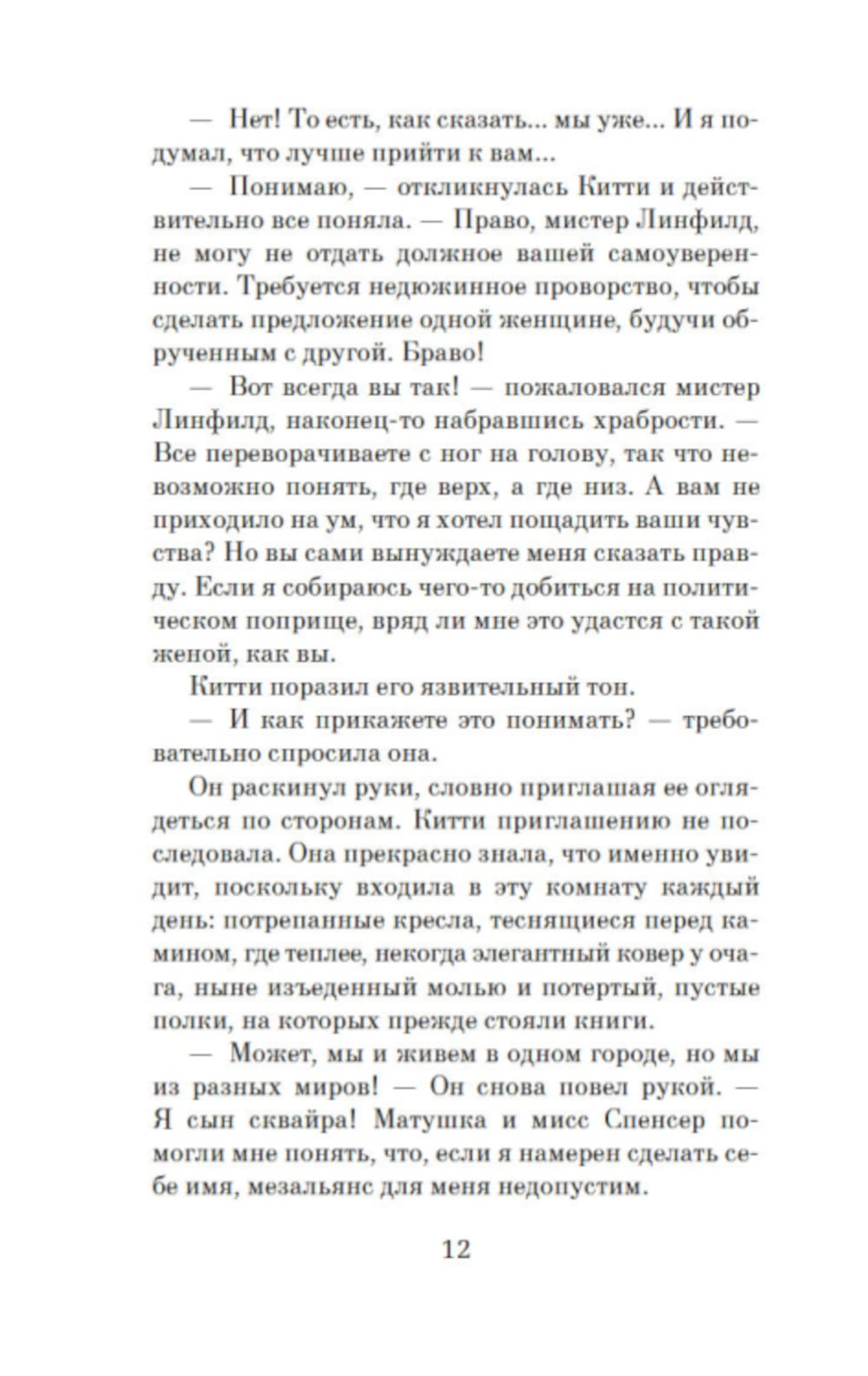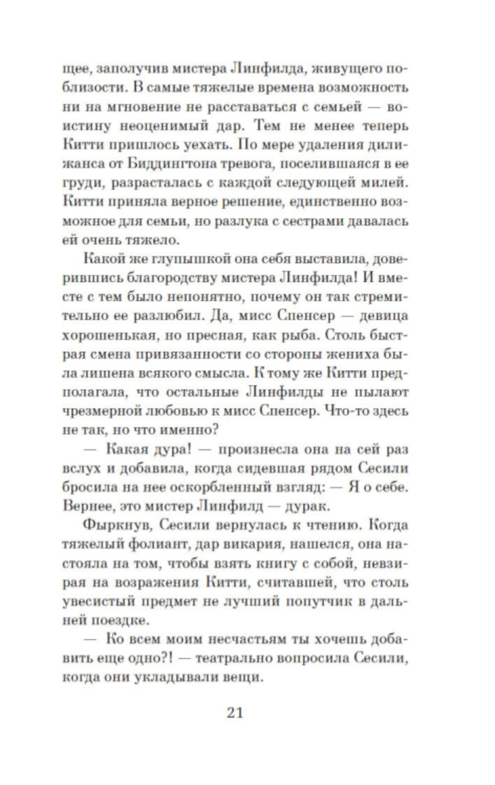 Англия, начало девятнадцатого века. Двадцатилетней Китти Тэлбот, на попечении которой находятся четыре младшие сестры, нужно за короткий срок найти огромную сумму, чтобы выплатить кредиторам родительские долги. Иначе можно остаться без крыши над головой. И пусть эта крыша протекает, а комнаты обставлены довольно скудно, - чтобы сохранить дом, в котором прошло детство, все средства хороши! Китти решается на отчаянный шаг - добиться предложения руки и сердца от какого-нибудь состоятельного джентльмена из высшего общества. Ведь кто не играет, тот не выигрывает, а риск - всего лишь часть игры. Чего не ожидает Китти, так это встречи с одним очень проницательным господином - лордом Рэдклиффом, старшим братом восхитительно богатого Арчибальда де Лейси. Лорд, безошибочно угадавший в Китти охотницу за деньгами, полон решимости разрушить ее планы любой ценой... Английские традиции, английские манеры, английский юмор от "современной Джейн Остин"!| Издательство | Азбука |