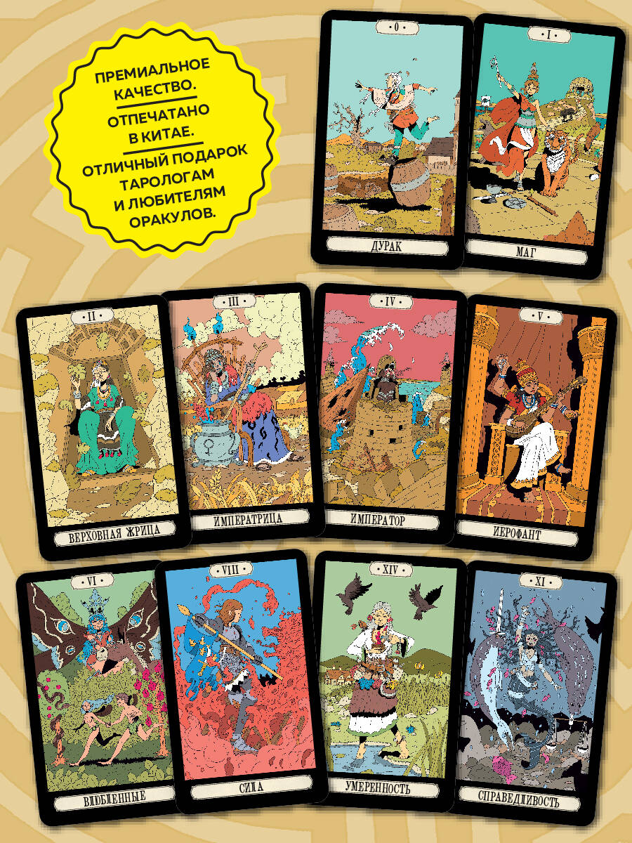 Колода Таро для тех, кому нужен совет от самых могущественных ведьм всех времен и народов. Безумные старухи, древние фэйри, создания Ночи, повелительницы хаоса, властители судеб и бесстрашные исследовательницы примерили на себя архетипы Старших арканов, чтобы помочь ответить на любой ваш вопрос. Оригинальный гротескный стиль иллюстратора и карикатуриста Симоне Паче органично сочетается с классической традицией Таро Уэйта, что позволяет работать с колодой даже начинающим тарологам. Эта колода придется по вкусу тем, кто устал от излишнего пафоса, ценит иронию и ищет новых впечатлений. Таро «Советы ведьмы» - это: • 78 карт с классическими сюжетами и значениями Таро. • Полноцветное руководство с описанием каждой карты, позитивными и негативными толкованиями арканов. • Краткие послания-ключи для каждой карты для лучшего запоминания значений. • Рекомендации по работе с колодой и простые расклады.| Издательство | ООО "Издательство "Эксмо" |