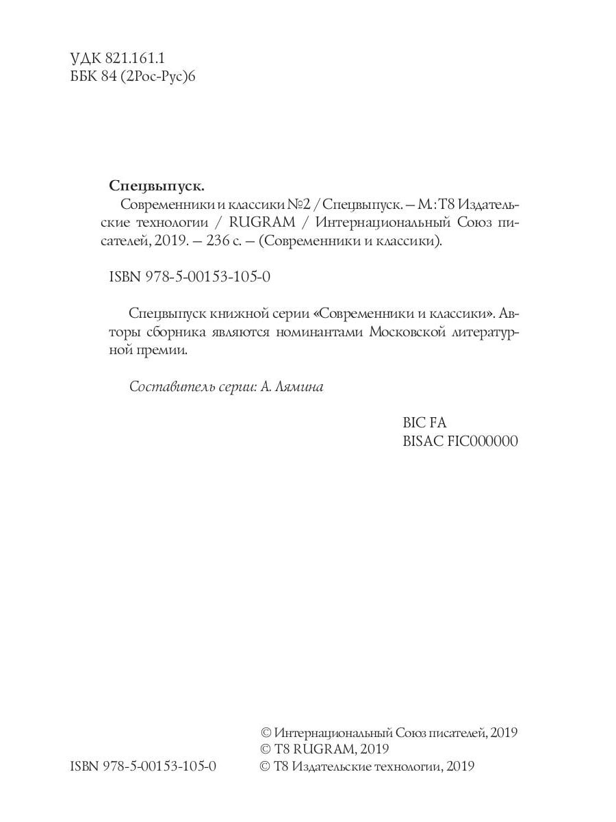 Спецвыпуск книжной серии «Современники и классики». Авторы сборника являются номинантами Московской литературной премии.| Издательство | Т8 RUGRAM |