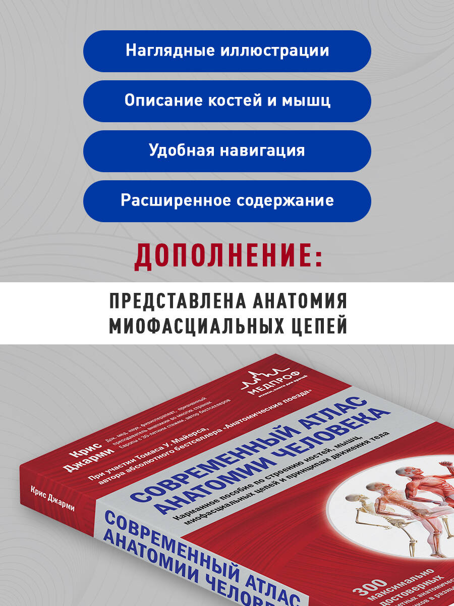 Аннотация: Современный атлас анатомии человека. Карманное пособие по строению костей, мышц, миофасциальных цепей и принципам движения тела