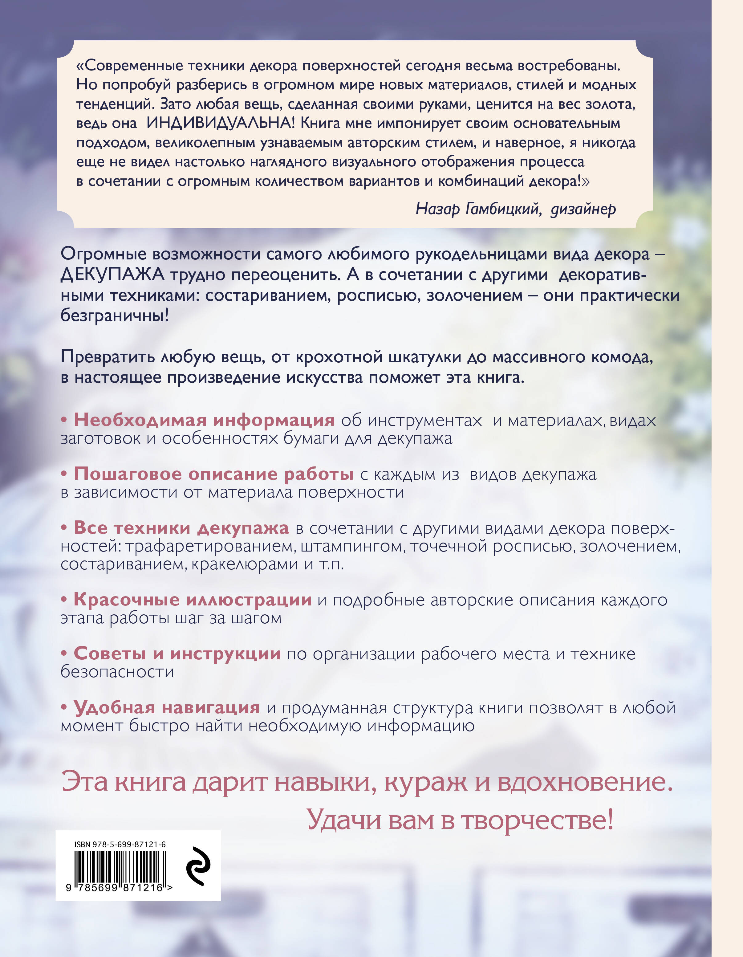 Аннотация: Современный декупаж и другие декоративные техники. Самое полное и понятное пошаговое руководство для начинающих. Новейшая энциклопедия