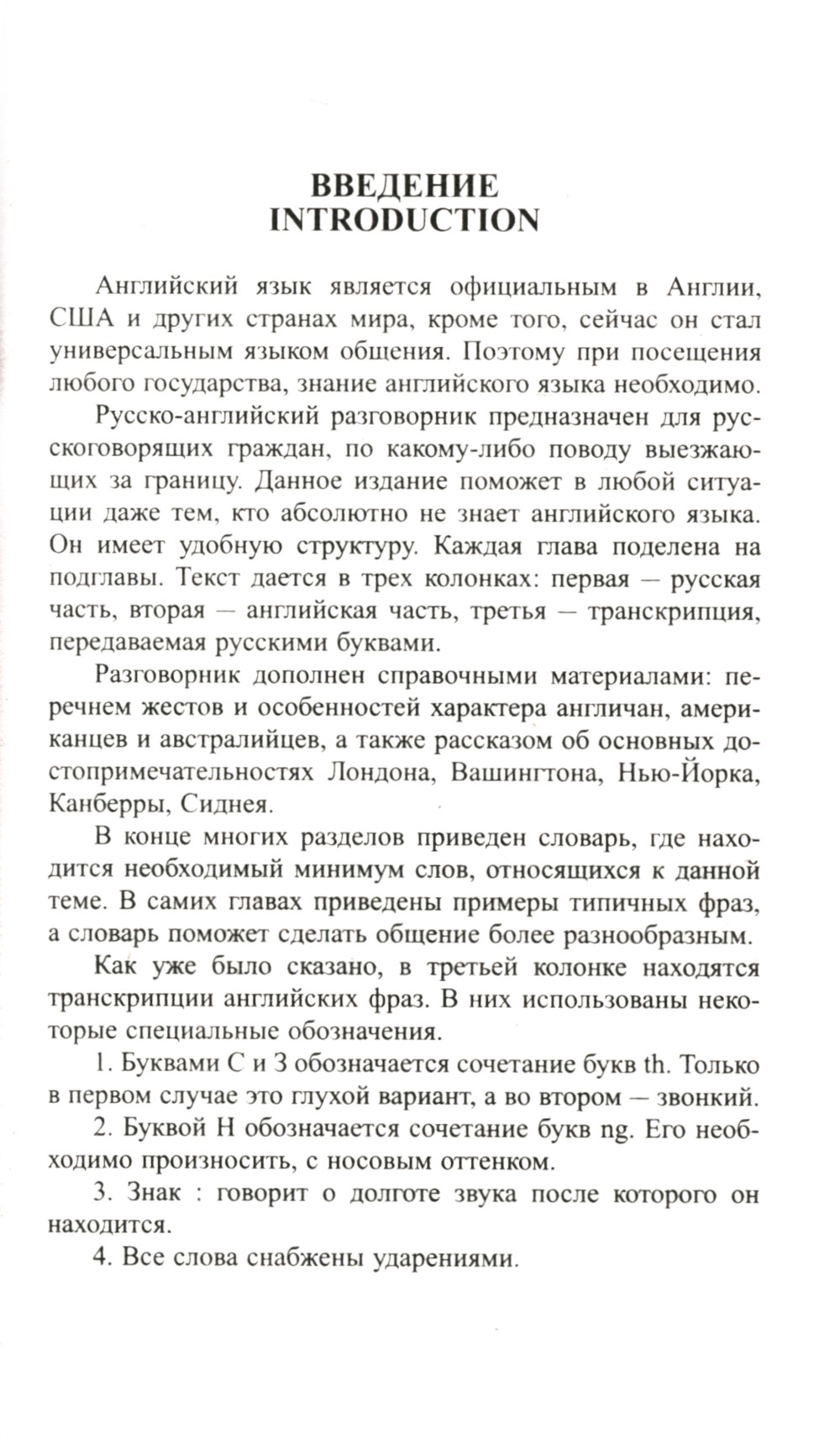 Данное издание содержит необходимый минимум слов и выражений, который поможет при общении с англоговорящими собеседниками. Предназначен для общения с иностранными деловыми партнерами, а также для неформального общения во время туристических поездок. Кроме того, разговорник может быть полезен гражданам, выезжающим в другую страну на постоянное место жительства.| Издательство | Дом славянской книги |