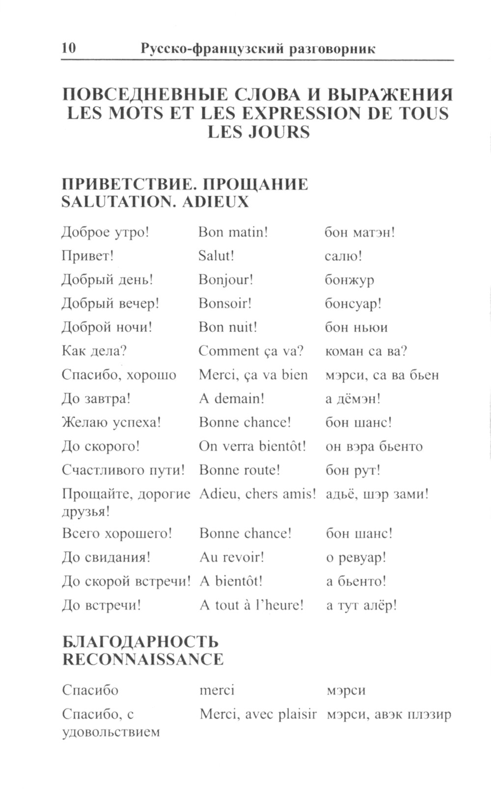 Данное издание содержит необходимый минимум слов и выражений, который поможет при общении с франкоговорящими собеседниками. Разговорник предназначен для общения с иностранными деловыми партнерами, а также для неформального общения во время туристических поездок. Кроме того, книга может быть полезна гражданам, выезжающим в другую страну на временное или постоянное место жительство.| Издательство | Дом славянской книги |