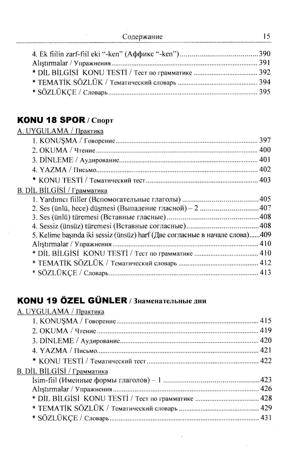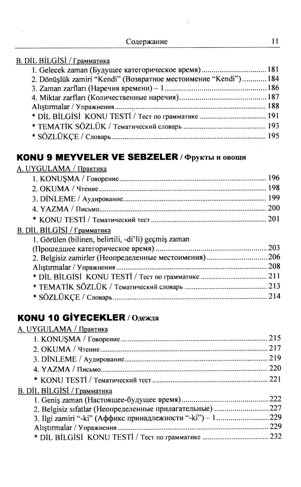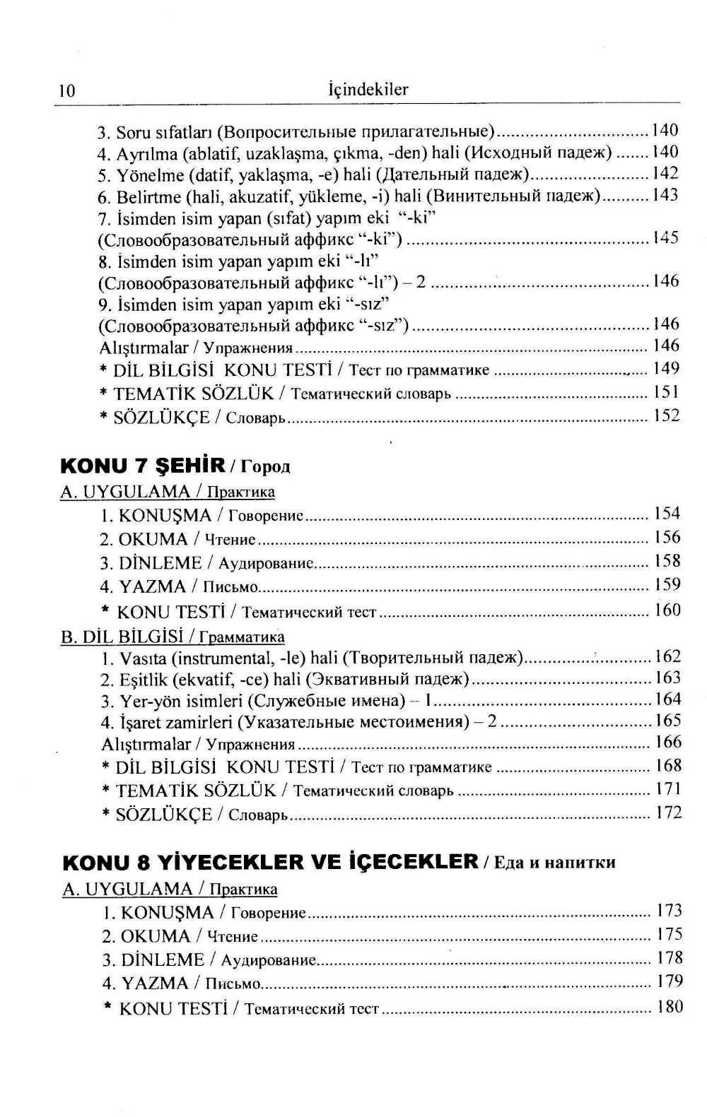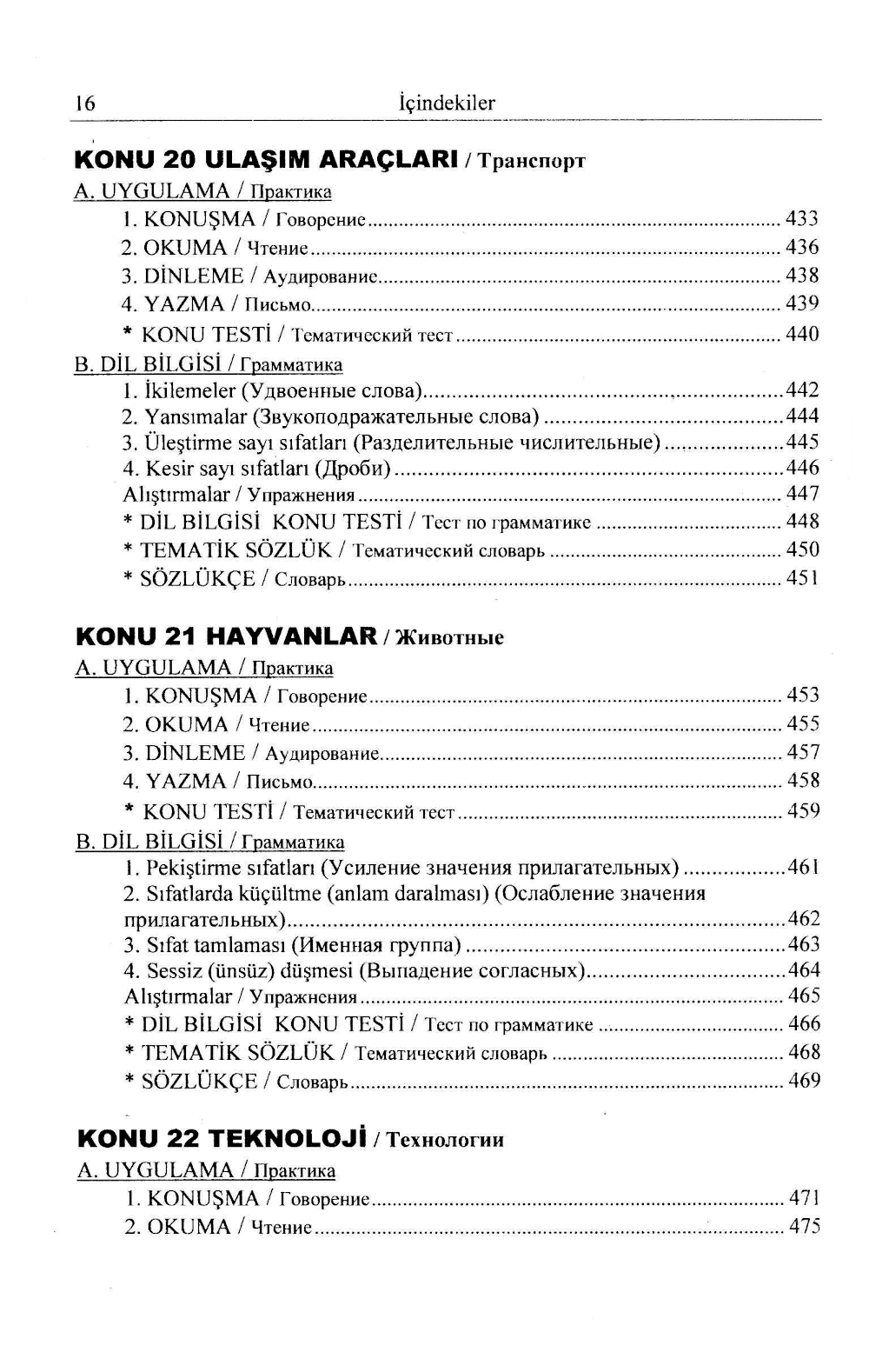 Уникальность данного учебника состоит в том, что он является первым учебным пособием, разработанным турецкими специалистами-преподавателями специально для русскоязычной аудитории. Учебник составлен согласно стандартам Европейского языкового портфеля. Настоящий учебник задуман в виде трехтомного комплекса, каждый том рассчитан на уровни А, В, С1 соответственно. Издание, которое вы держите в руках, предназначено для начального уровня (уровень А). Оно состоит из 24 уроков, предназначенных для изучения в течение одного года при восьми академических часах занятий в неделю. Каждый урок состоит из практической части и грамматического материала; практическая часть включает в себя упражнения на развитие навыков разговорной и письменной речи, чтения и аудирования. Все упражнения, тесты и задания снабжены ключами для более эффективного процесса обучения. Учебник адресован студентам вузов, учащимся языковых курсов, а также широкому кругу лиц, желающих изучать турецкий язык с помощью преподавателя или самостоятельно.| Издательство | ЛЕНАНД |