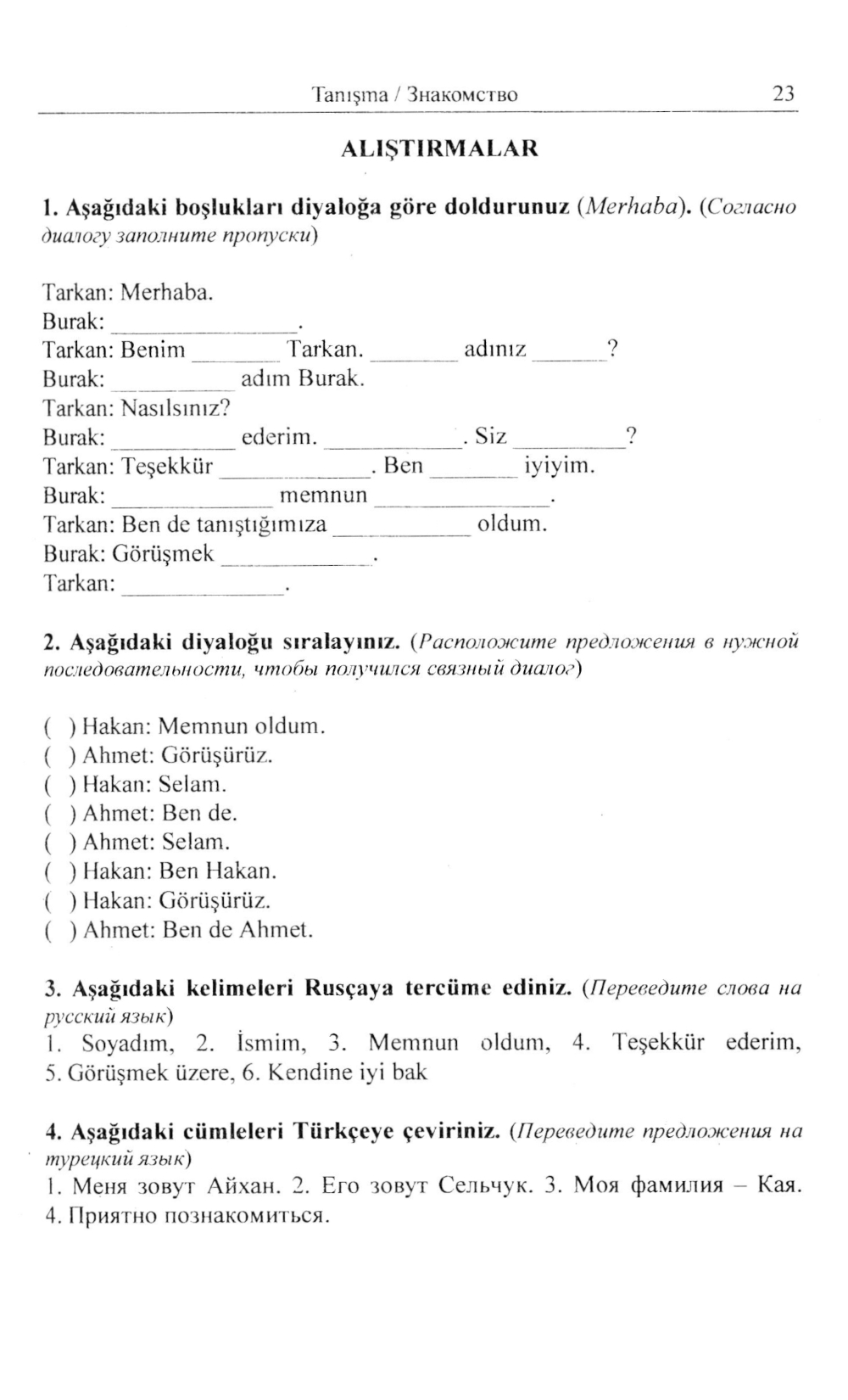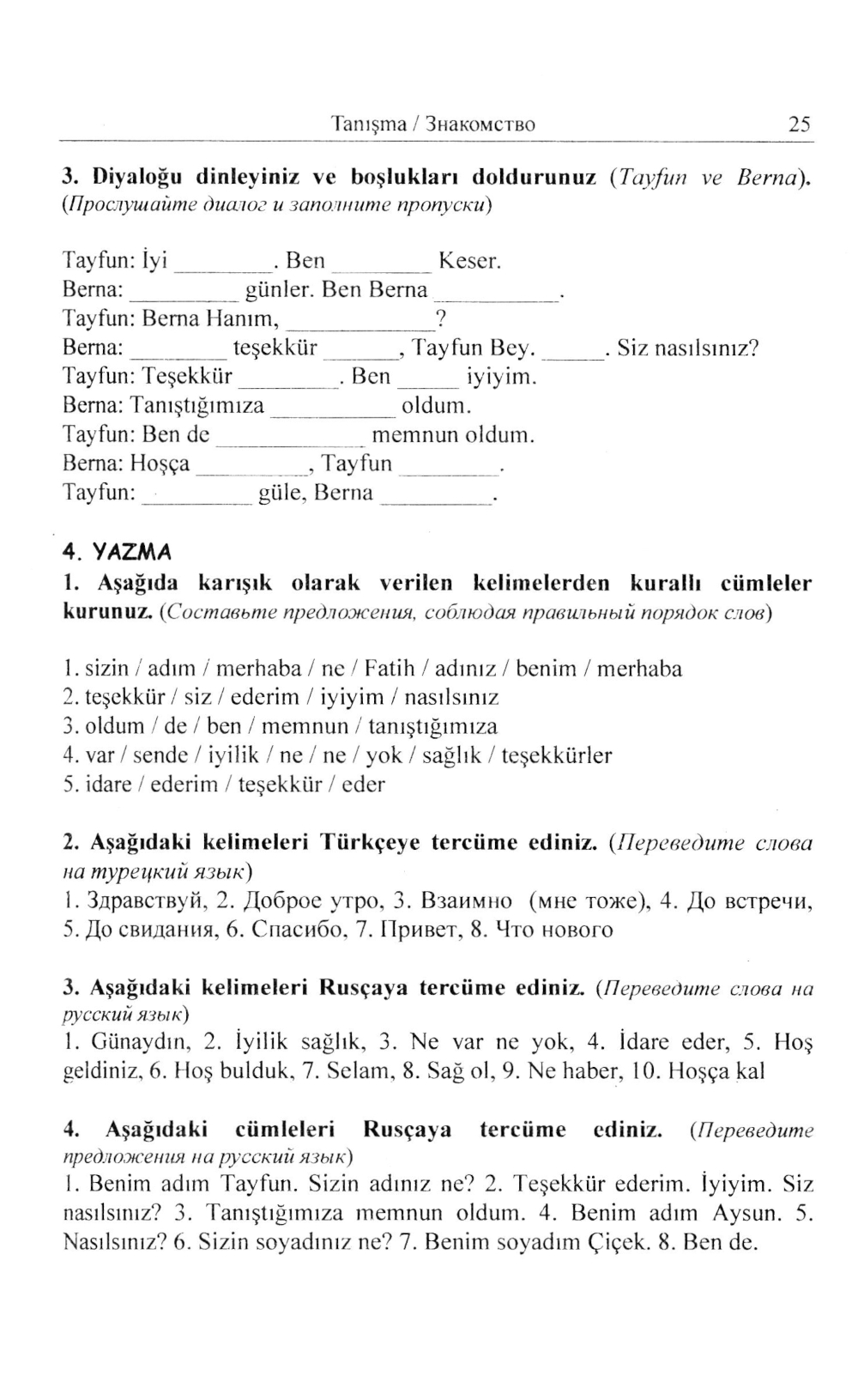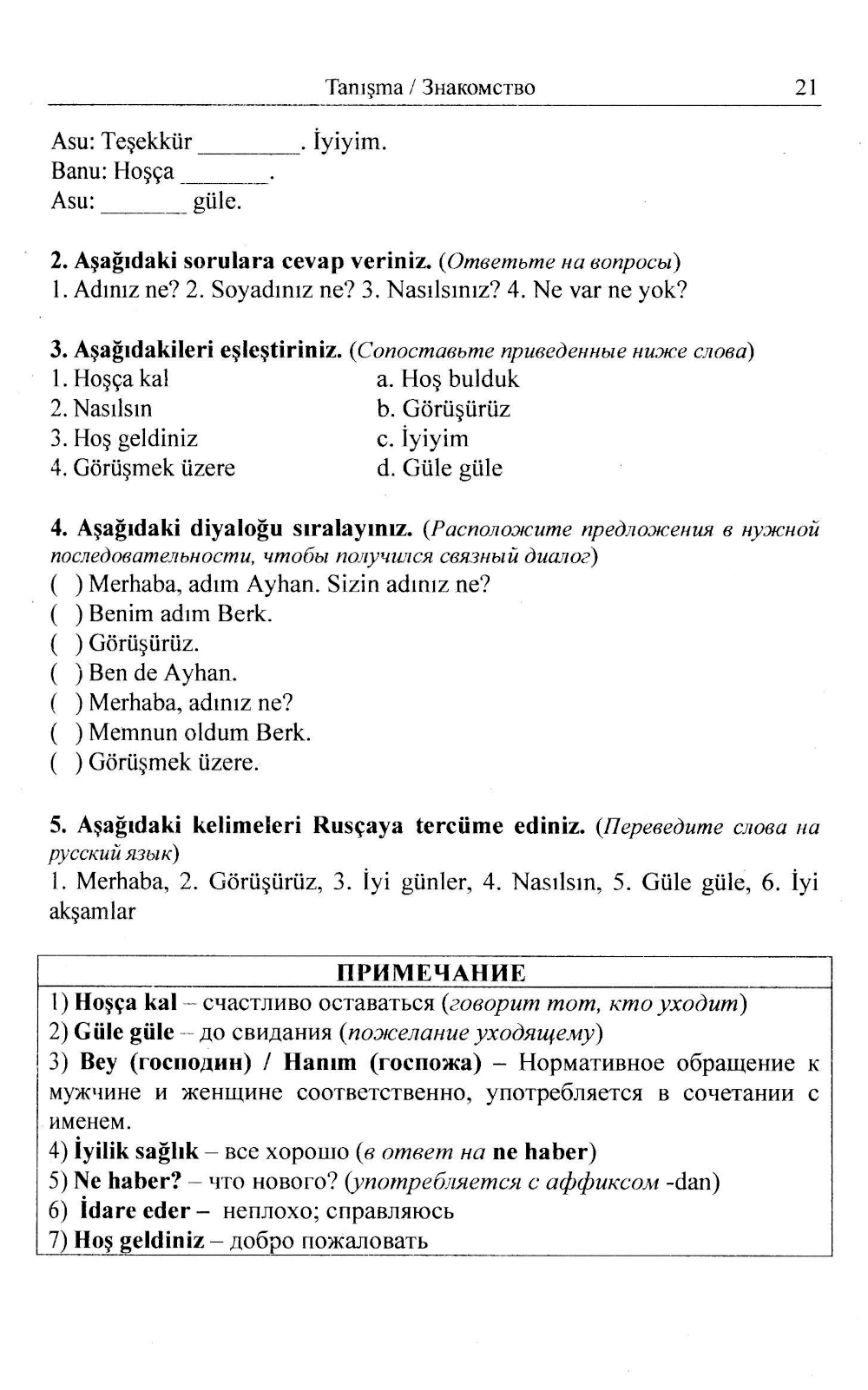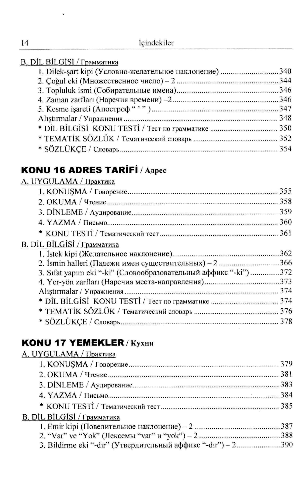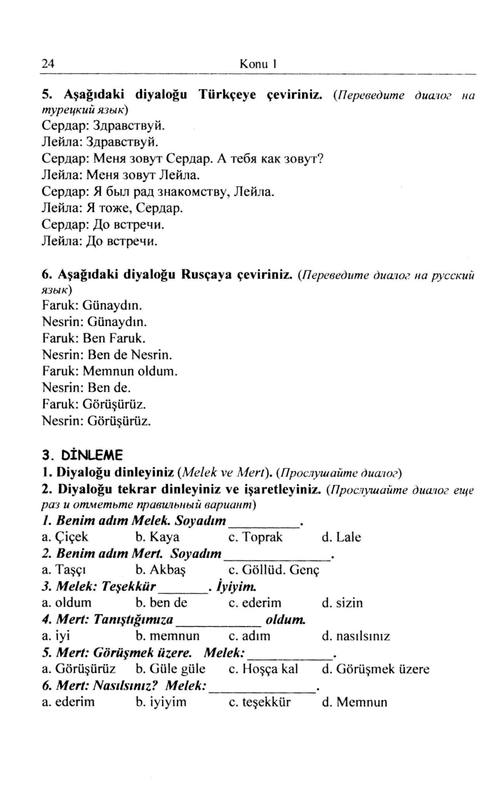 Уникальность данного учебника состоит в том, что он является первым учебным пособием, разработанным турецкими специалистами-преподавателями специально для русскоязычной аудитории. Учебник составлен согласно стандартам Европейского языкового портфеля. Настоящий учебник задуман в виде трехтомного комплекса, каждый том рассчитан на уровни А, В, С1 соответственно. Издание, которое вы держите в руках, предназначено для начального уровня (уровень А). Оно состоит из 24 уроков, предназначенных для изучения в течение одного года при восьми академических часах занятий в неделю. Каждый урок состоит из практической части и грамматического материала; практическая часть включает в себя упражнения на развитие навыков разговорной и письменной речи, чтения и аудирования. Все упражнения, тесты и задания снабжены ключами для более эффективного процесса обучения. Учебник адресован студентам вузов, учащимся языковых курсов, а также широкому кругу лиц, желающих изучать турецкий язык с помощью преподавателя или самостоятельно.| Издательство | ЛЕНАНД |