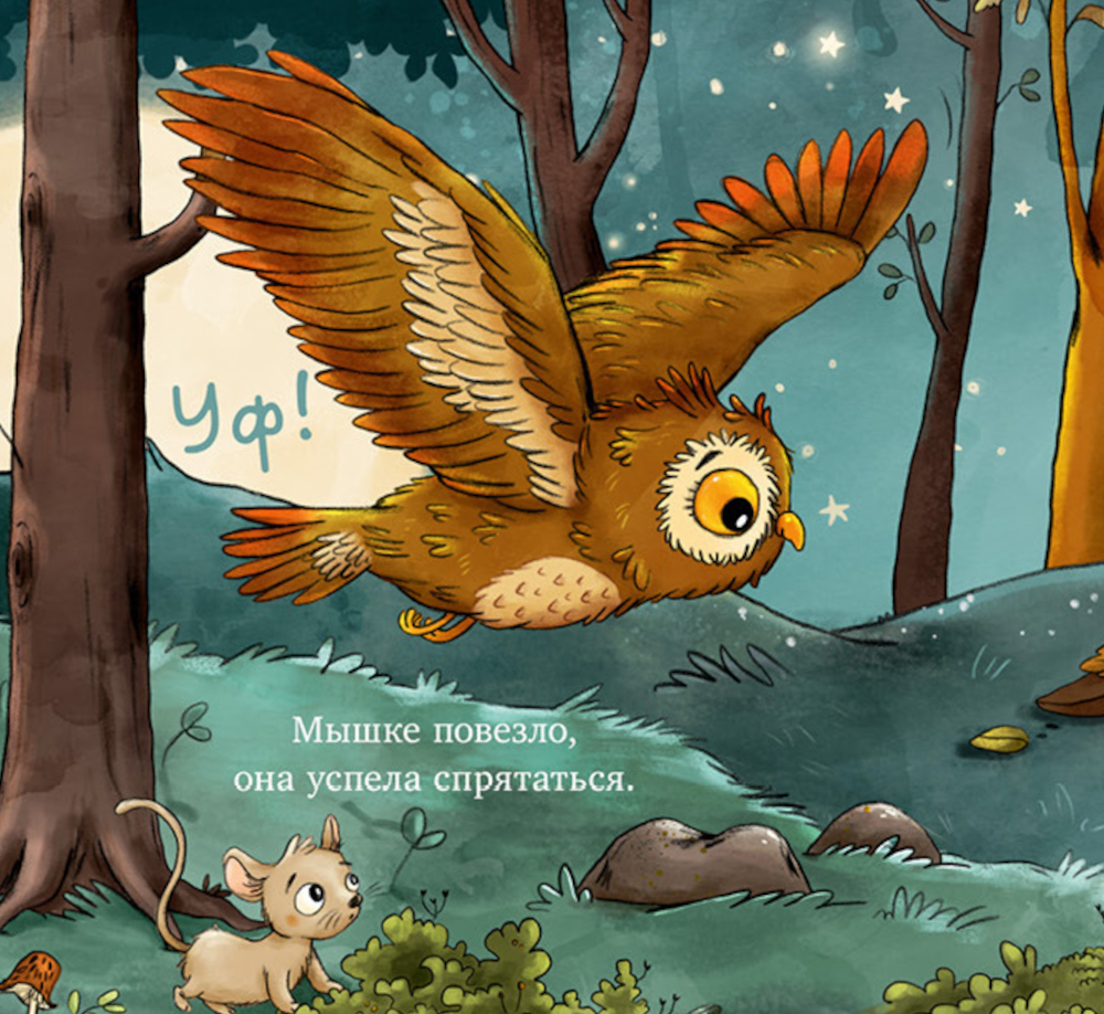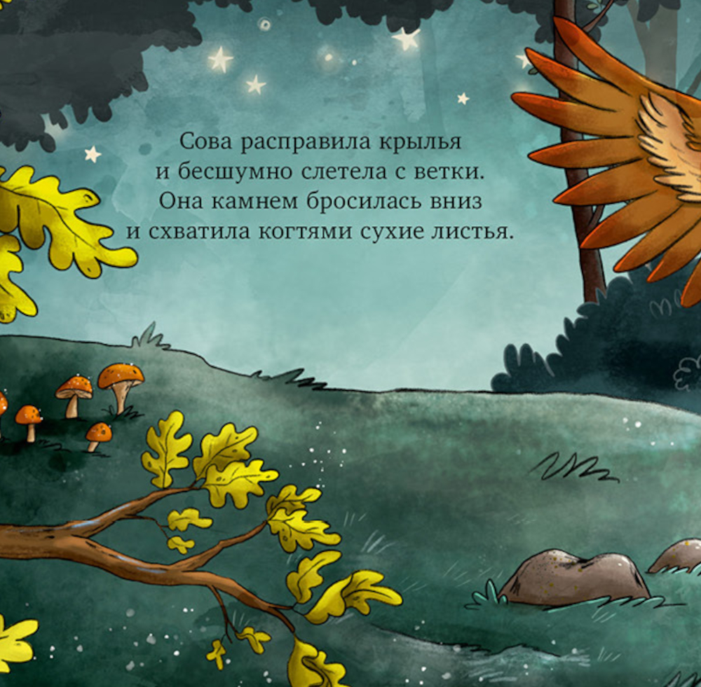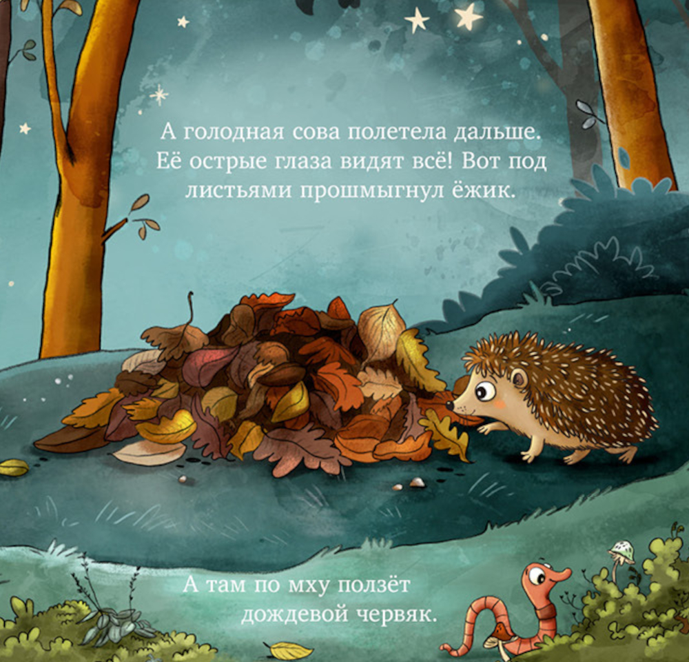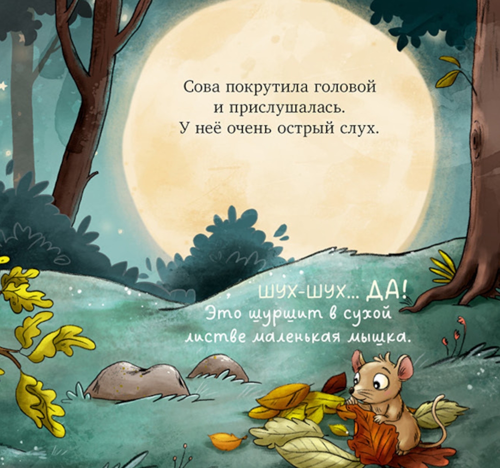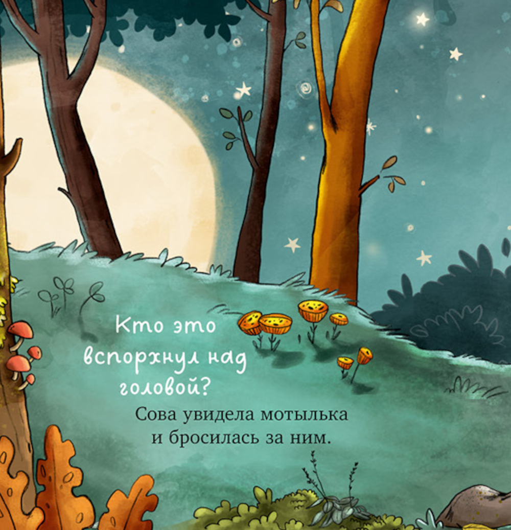 Солнышко скрылось за горизонтом, наступила ночь. А значит, совушке пора просыпаться. Чем же она займется в притихшем лесу? Из этой яркой книжки малыш узнает много нового о лесных обитателях, познакомится с их повадками и привычками.| Издательство | Клевер-Медиа-Групп |