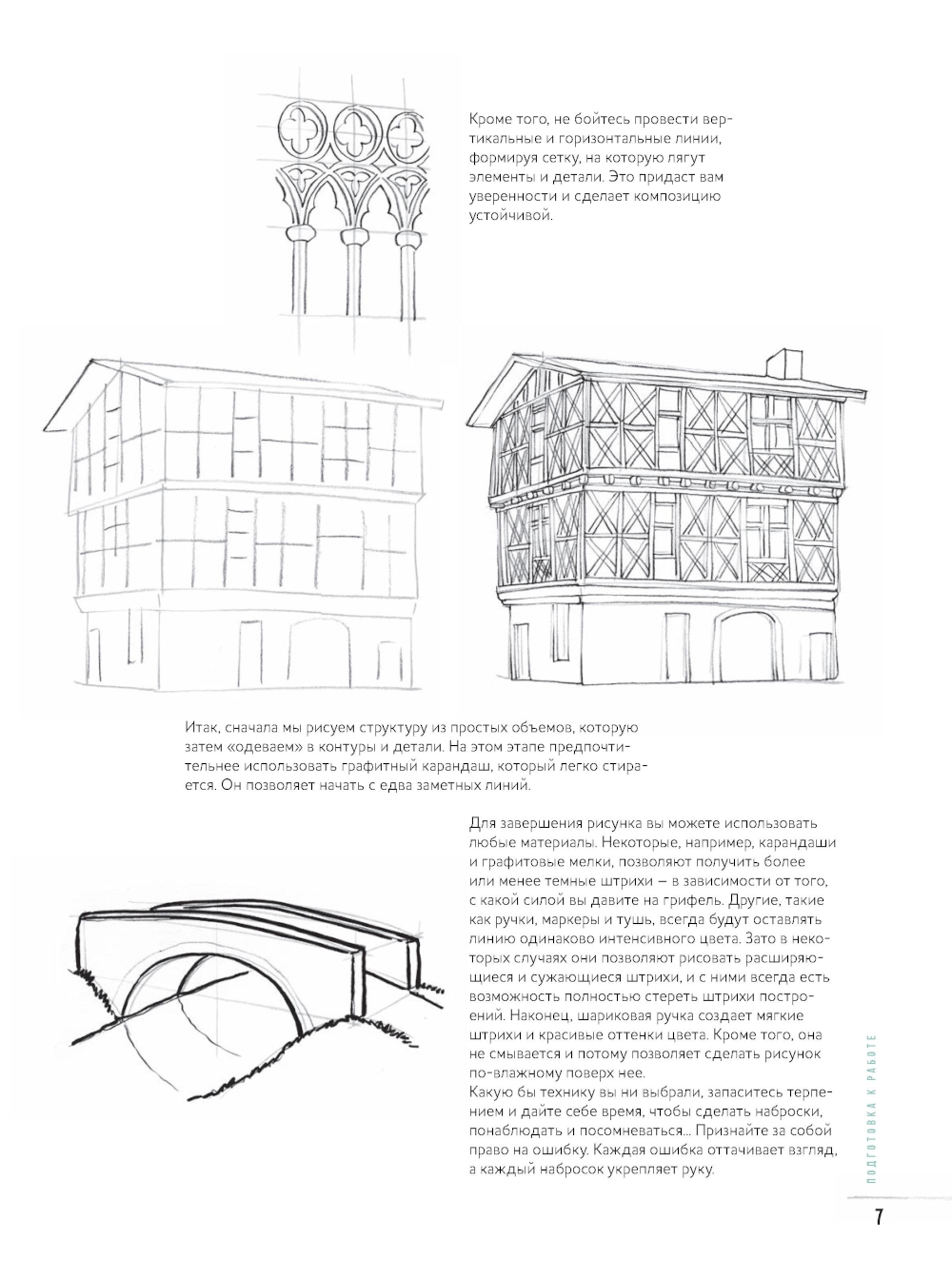 Создаем зарисовки зданий и других сооружений шаг за шагом. 50 проектов с подробными объяснениями и рисунками. Скетчбук начинающего художника