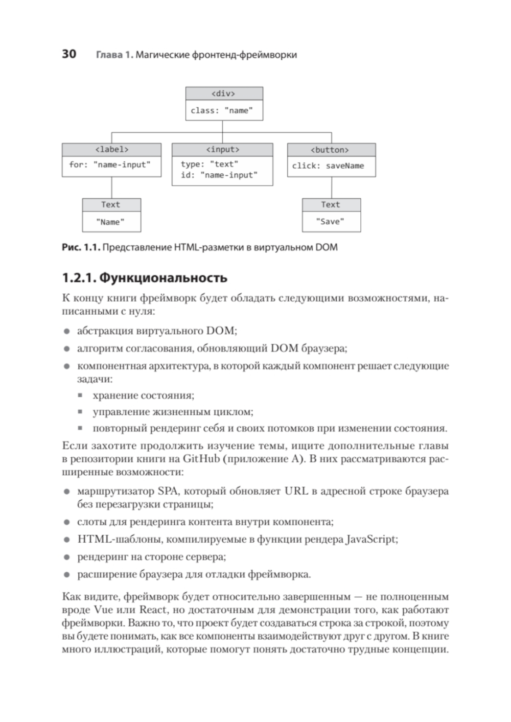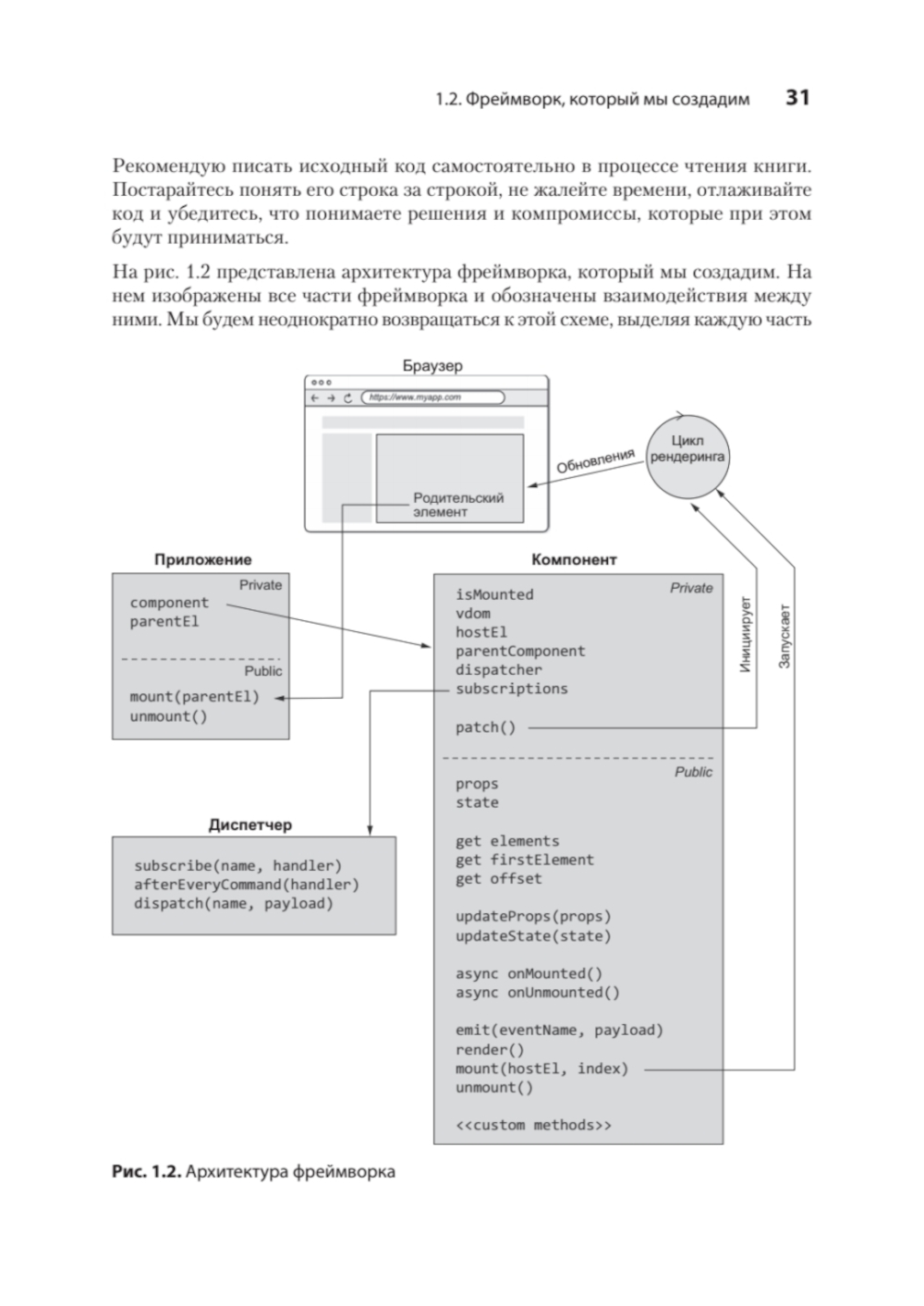 Мы используем фронтенд-фреймворки каждый день, но вряд ли действительно понимаем, что происходит там, под капотом. Создание своего фреймворка - отличный способ узнать, как он работает с DOM, генерирует представления страниц, передает данные между компонентами и взаимодействует с операционной системой. Шаг за шагом мы будем создавать собственный фреймворк на JavaScript и опубликуем его как npm-пакет. Пора разобраться, как работает современный фреймворк, научиться управлять состоянием компонентов и их жизненным циклом, работать с виртуальным DOM и использовать алгоритмы согласования для эффективного обновления HTML. Все ключевые концепции изложены простым языком и сопровождаются схемами. Многие концепции заимствованы из React, Svelte, Angular и других известных инструментов| Издательство | Питер |