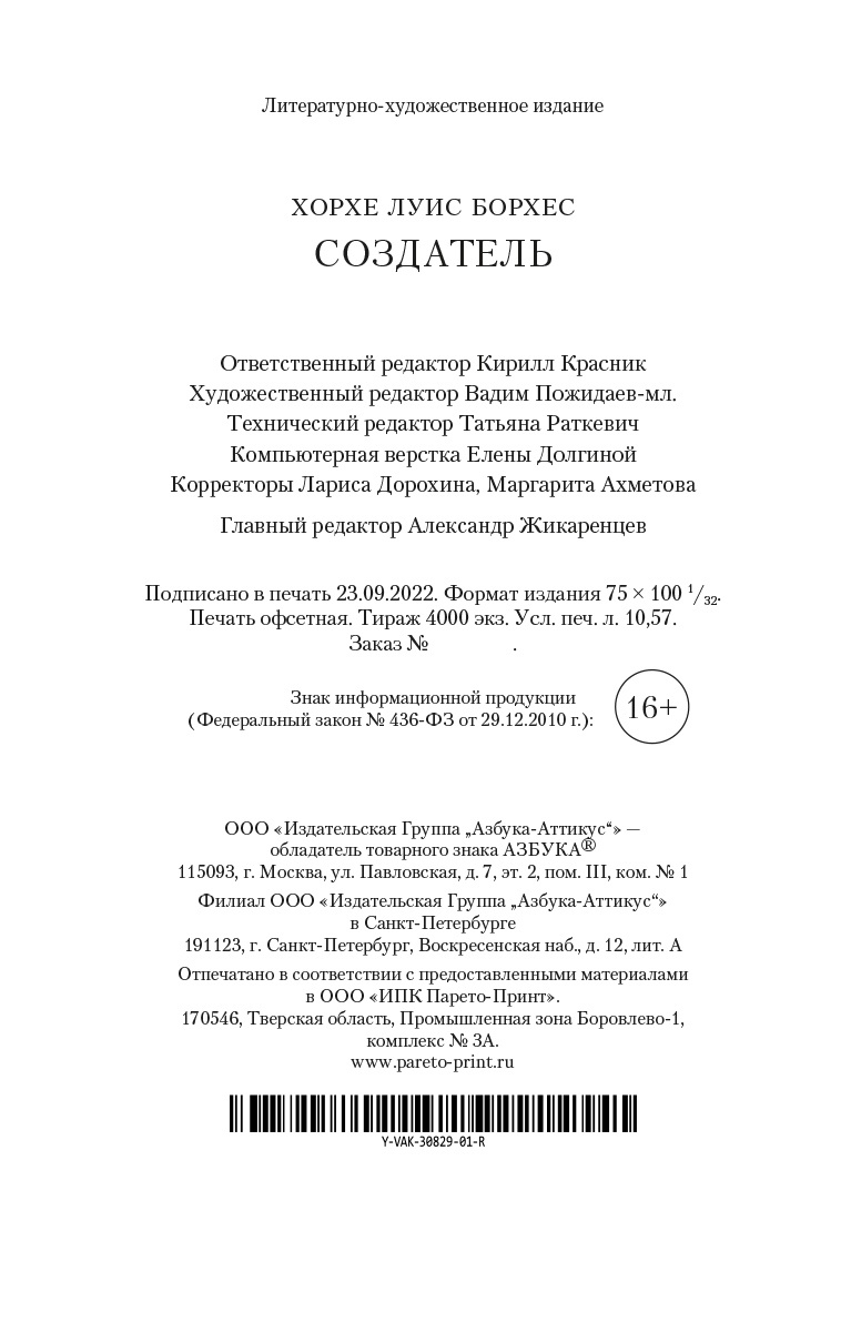 Хорхе Луис Борхес - один из самых известных писателей ХХ века, во многом определивший облик современной литературы. Тексты Борхеса, будь то художественная проза, поэзия или размышления, представляют собой своеобразную интеллектуальную игру - они полны тайн и фантастических образов, чьи истоки следует искать в литературах и культурах прошлого. В настоящее издание вошли сборники рассказов и стихотворений «Создатель» и «25 августа 1983 года», а также впервые на русском в полном виде знаменитое интервью, взятое у Борхеса его соавтором и биографом Марией Эстер Васкес.| Издательство | Азбука |
