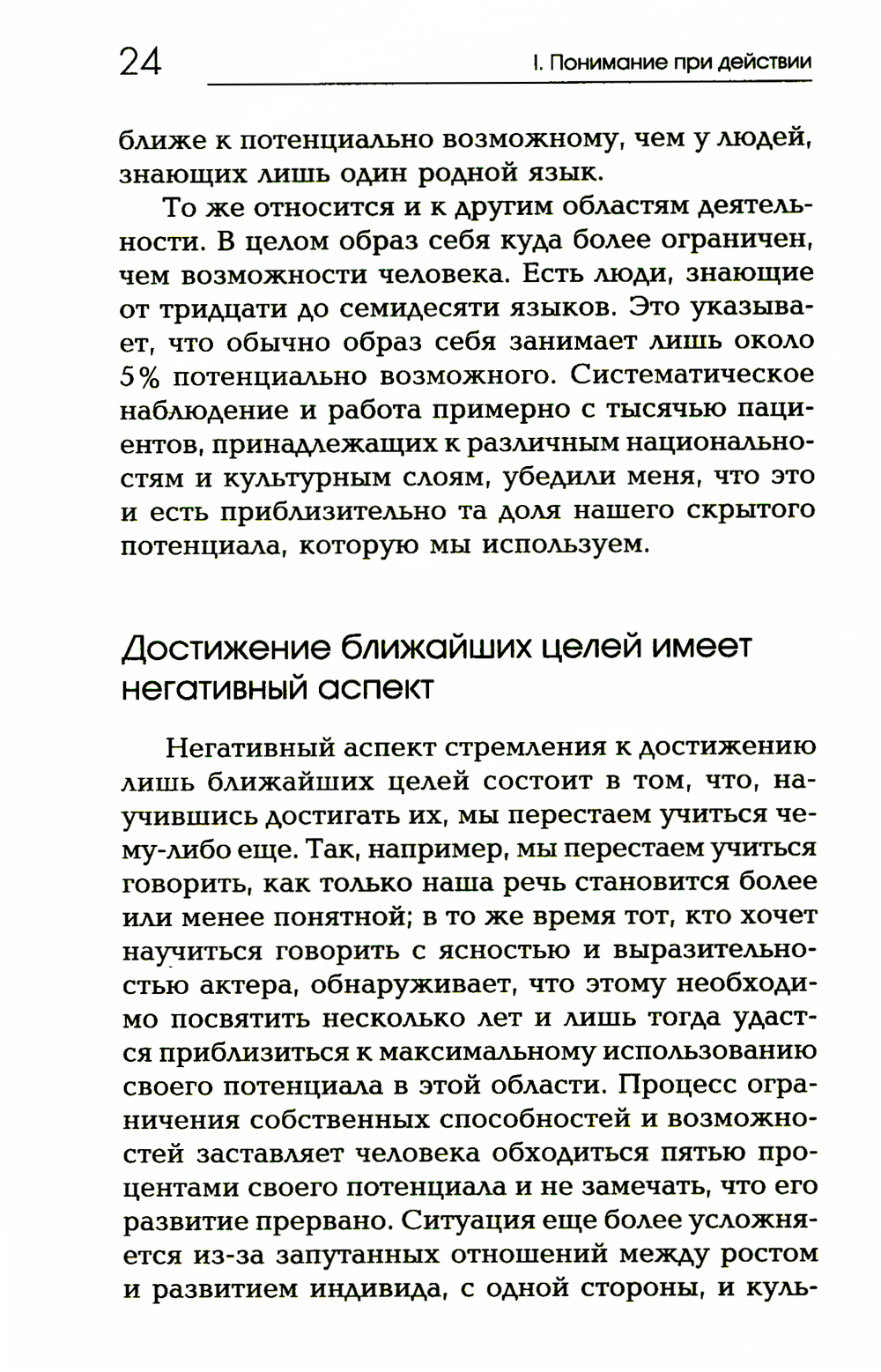 Книга уникального психотерапевта представляет собой практическое руководство к достижению более здоровой и полнокровной жизни. Подход Фельденкрайза основывается на точном понимании функционирования нервной системы человека. Его работа предвосхитила многие идеи в неврологии и медицине, которые с тех пор стали общепринятыми, такие как асимметрия полушарий мозга и недвойственность тела и психики. Любой представитель «помогающих» профессий - физиотерапевт, логопед, специалист по трудотерапии, психолог, врач и медсестра - найдет в этой книге уникальную точку зрения, которую он сможет использовать для улучшения своей работы. Метод Фельденкрайза по сути не является «терапией», но скорее способствует обучению, которое включает в себя как мозг, так и человека в целом. Таким образом, метод имеет важное значение для образования в любой области, где задействованы обучение и формирование навыков, к примеру, в музыке, танцах и спорте. Изучив и применив приведенные здесь упражнения, вы сможете открыть дверь в сокровищницу собственных возможностей. Для профессионалов в области психотерапии и психологического консультирования, а также всех, кто интересуется философией и психологией.| Издательство | Академический проект |