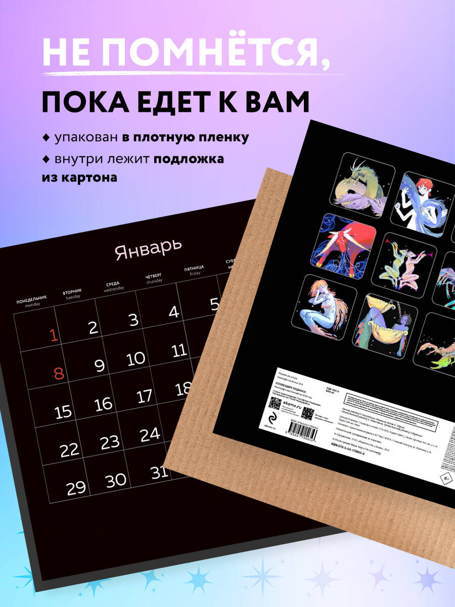 О календаре: Календарь с ярким и загадочным дизайном. Иллюстрации с изображениями зодиакальных созвездий выполнены в авторском стиле художницы Мадж, за творчеством которой следят уже более 40 тысяч человек на ее странице ВКонтакте. Для кого: Календарь станет отличным подарком для тех, кто увлекается астрономией или астрологией и эзотерикой. Высокое качество печати гармонично дополняет яркие авторские иллюстрации, которые украсят любой дом. О серии: Наши настенные календари отличаются высоким качеством исполнения! Тщательно подобранные иллюстрации, напечатанные на глянцевой бумаге высочайшего качества, станут настоящим украшением дома, а в календарной сетке найдется место для ваших планов: большие клетки позволят делать записи и организовать свой год! В календаре также отмечены все государственные праздники. В серии настенных календарей издательства «ЭКСМО» каждый найдет тему по вкусу: великие художники, великолепные подборки с самыми знаменитыми произведениями искусства, легендарные кинематографические саги и игры, главные книжные авторы и бестселлеры, фотографии и иллюстрации любимых животных и многое-многое другое! Технические параметры: Тип календаря - настенный перекидной. Год - 2024. Календарная сетка - с разбивкой по месяцам. Вид скрепления - скрепка. Ширина - 30 см. Высота - 30 см. Внутренний блок - мелованная бумага 150 г/м2. Подложка - плотный гофрокартон для поддержания формы. Индивидуальная упаковка в плотный целлофановый пакет.| Издательство | ООО "Издательство "Эксмо" |