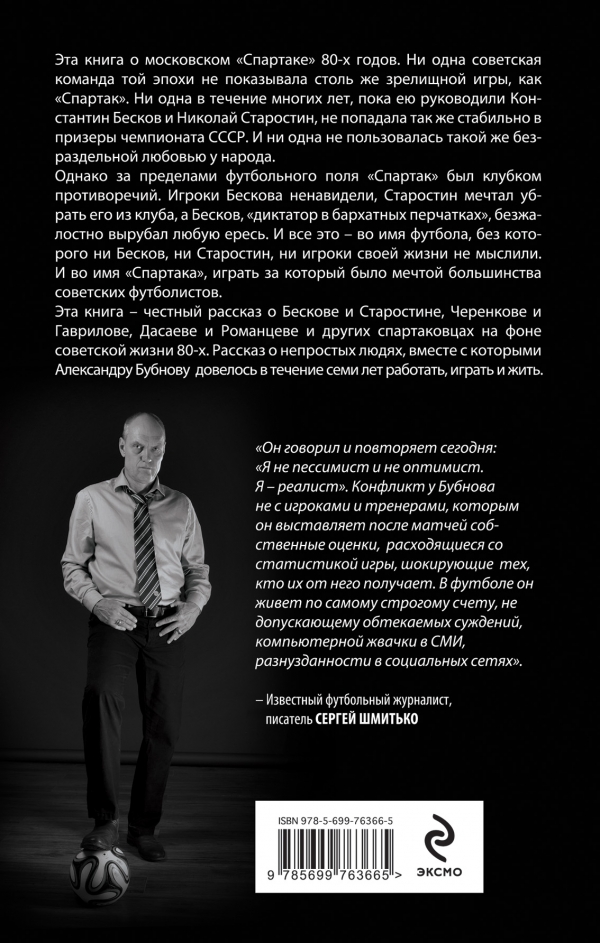 Эта книга - честный рассказ о Бескове и Старостине, Черенкове и Гаврилове, Дасаеве и Романцеве и других спартаковцах на фоне советской жизни 80-х. Рассказ о непростых людях, вместе с которыми Александру Бубнову довелось в течение семи лет работать, играть и жить.