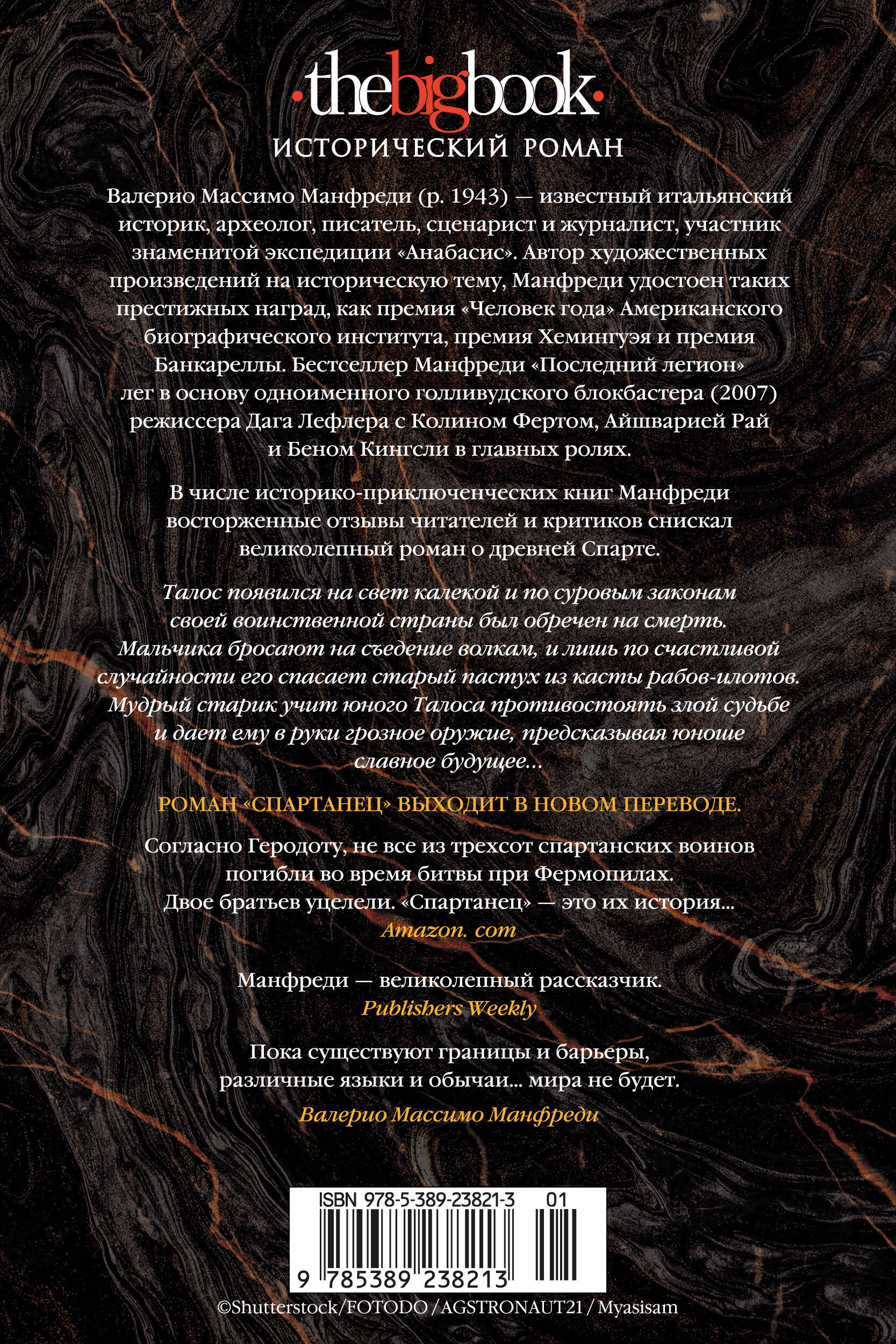 Валерио Массимо Манфреди (р. 1943) - известный итальянский историк, археолог, писатель, сценарист и журналист, участник знаменитой экспедиции "Анабасис". Автор художественных произведений на историческую тему, Манфреди удостоен таких престижных наград, как премия "Человек года" Американского биографического института, премия Хемингуэя и премия Банкареллы. Бестселлер Манфреди "Последний легион" лег в основу одноименного голливудского блокбастера (2007) режиссера Дага Лефлера с Колином Фертом, Айшварией Рай и Беном Кингсли в главных ролях. В числе историко-приключенческих книг Манфреди восторженные отзывы читателей и критиков снискал великолепный роман о Древней Спарте. Талос появился на свет калекой и по суровым законам своей воинственной страны был обречен на смерть. Мальчика бросают на съедение волкам, и лишь по счастливой случайности его спасает старый пастух из касты рабов-илотов. Мудрый старик учит юного Талоса противостоять злой судьбе и дает ему в руки грозное оружие, предсказывая юноше славное будущее... Роман "Спартанец" выходит в новом переводе.| Издательство | Азбука-Аттикус Издат.группа ООО |