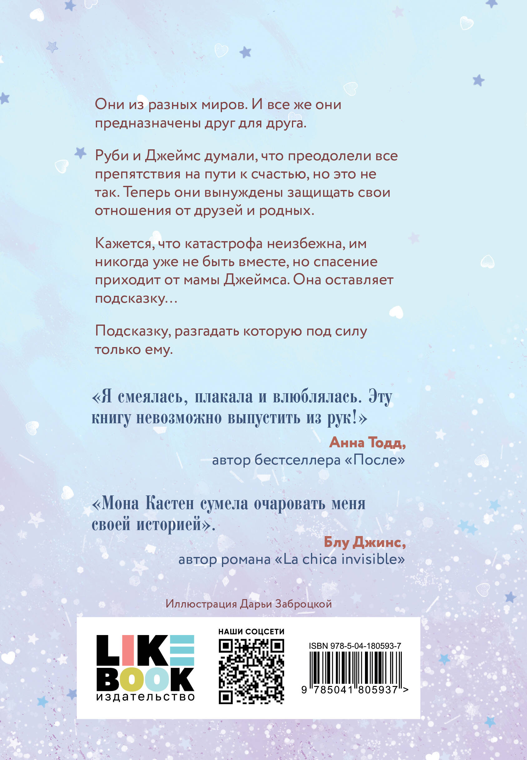 Лимитированное издание самой популярной романтической трилогии Моны Кастен. Невероятной красоты оформление: шикарная иллюстрация от Дарьи Заброцкой, закрашенный обрез с блестками. Абсолютный бестселлер! Тираж книг Моны Кастен уже перевалил отметку в 460 000 экземпляров в России и 2 млн экземпляров в Германии! Они из разных миров. И все же они предназначены друг для друга. Руби и Джеймс думали, что преодолели все препятствия на пути к счастью, но это не так. Теперь они вынуждены защищать свои отношения от друзей и родных. Кажется, что катастрофа неизбежна, им никогда уже не быть вместе, но спасение приходит от мамы Джеймса. Она оставляет подсказку… Подсказку, разгадать которую под силу только ему. «Я смеялась, плакала и влюблялась. Эту книгу невозможно выпустить из рук!» - Анна Тодд, автор бестселлера «После» «Мона Кастен сумела очаровать меня своей историей». - Блу Джинс, автор романа «La chica invisible»| Издательство | ООО "Издательство "Эксмо" |
