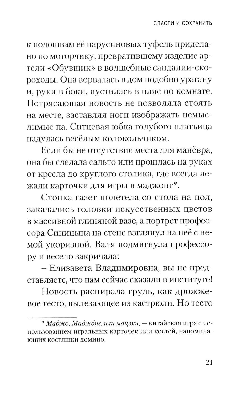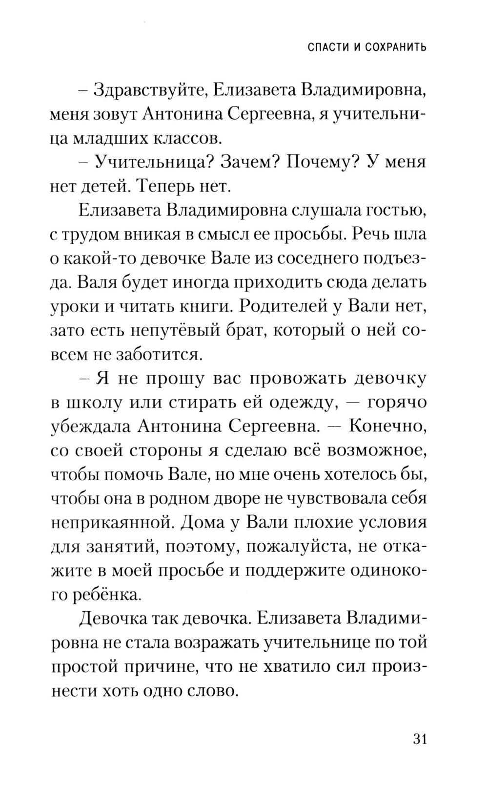 «Спаси и сохрани». Как часто люди произносят эти слова не задумываясь. Эта книга - о том, как важно спасти свою душу и сохранить то, что досталось от предков, о том, как страдание открывает путь к счастью, а власть золота заводит в тупик. Главное, не сдаться и выстоять перед невзгодами. Ирина Богданова - известный писатель, лауреат премии имени С. Т. Аксакова конкурса «Новая библиотека», номинант Патриаршей литературной премии имени святых равноапостольных Кирилла и Мефодия, лауреат литературной премии «Югра» и неоднократный дипломант конкурса изданий «Просвещение через книгу»| Издательство | Сибирская Благозвонница* |