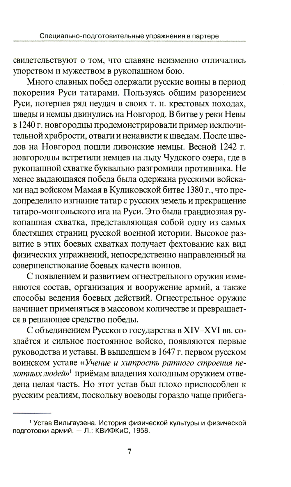 Данное учебно-методическое пособие посвящено одному из популярнейших военно-прикладных видов спорта - Армейскому рукопашному бою (АРБ). Обобщён опыт многолетней работы, предложены специально-подготовительные упражнения в партере, позволяющие повысить эффективность и рациональность техники и тактики ведения боя в положении лёжа. Эти упражнения позволяют сделать технику АРБ более экономичной и точной, без лишних затрат энергии и сил. Уделено внимание развитию основных физических качеств - силы, выносливости, быстроты, ловкости. Пособие будет интересно прежде всего преподавателям кафедр физической подготовки военных вузов, тренерам, инструкторам центров специального назначения, курсантам и военнослужащим воздушно-десантных войск, а также всем, кто занимается и интересуется рукопашным боем.| Издательство | Профит Стайл |