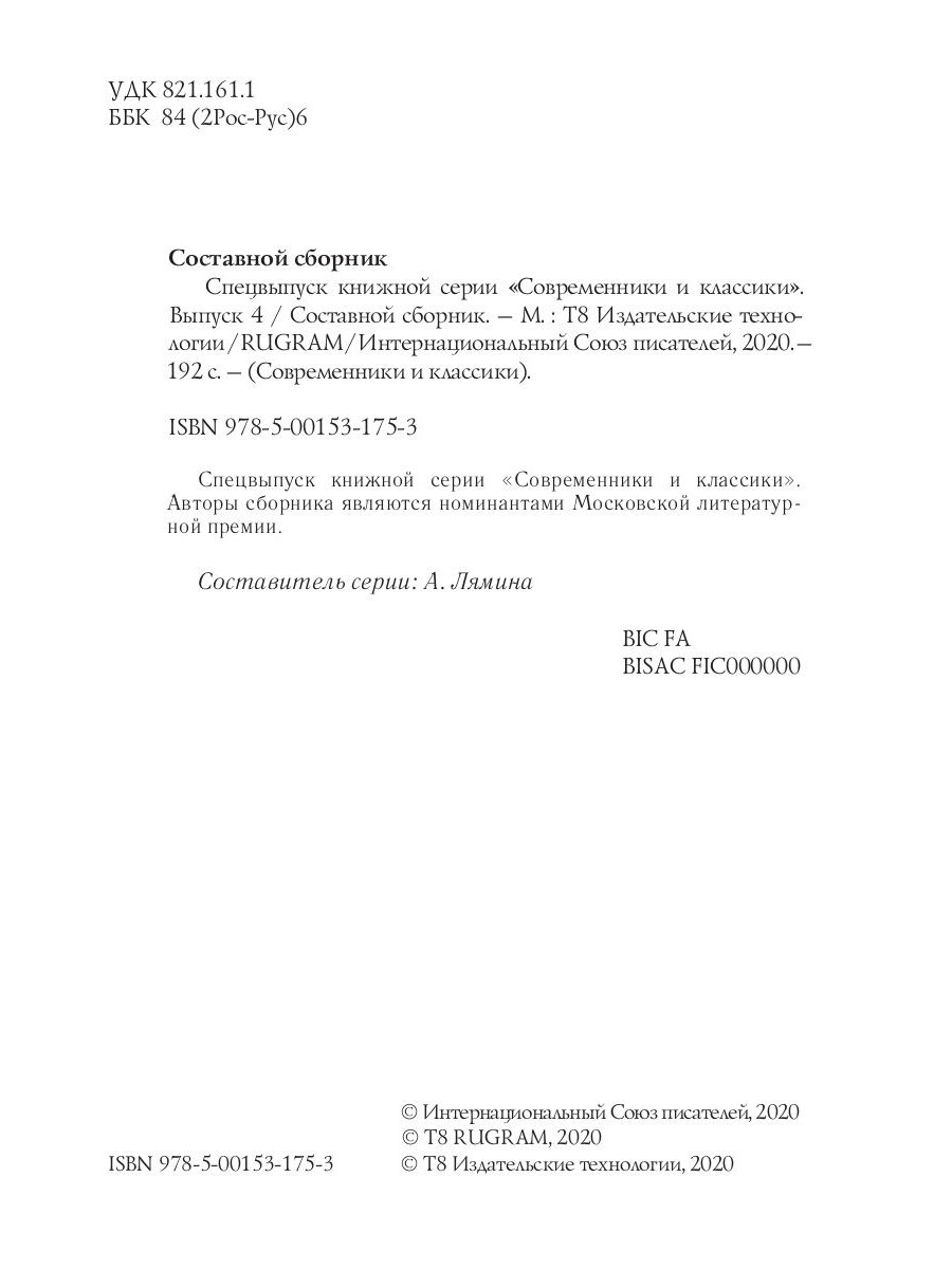 Спецвыпуск книжной серии «Современники и классики». Авторы сборника являются номинантами Московской литературной премии.