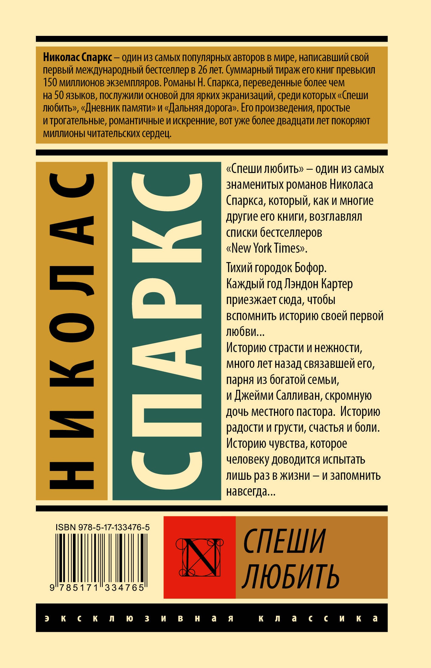 Тихий городок Бофор. Каждый год Лэндон Картер приезжает сюда, чтобы вспомнить историю своей первой любви… Историю страсти и нежности, много лет назад связавшей его, парня из богатой семьи, и Джейми Салливан, скромную дочь местного пастора. История радости и грусти, счастья и боли. Историю чувства, которое человеку доводится испытать лишь раз в жизни - и запомнить навсегда...
