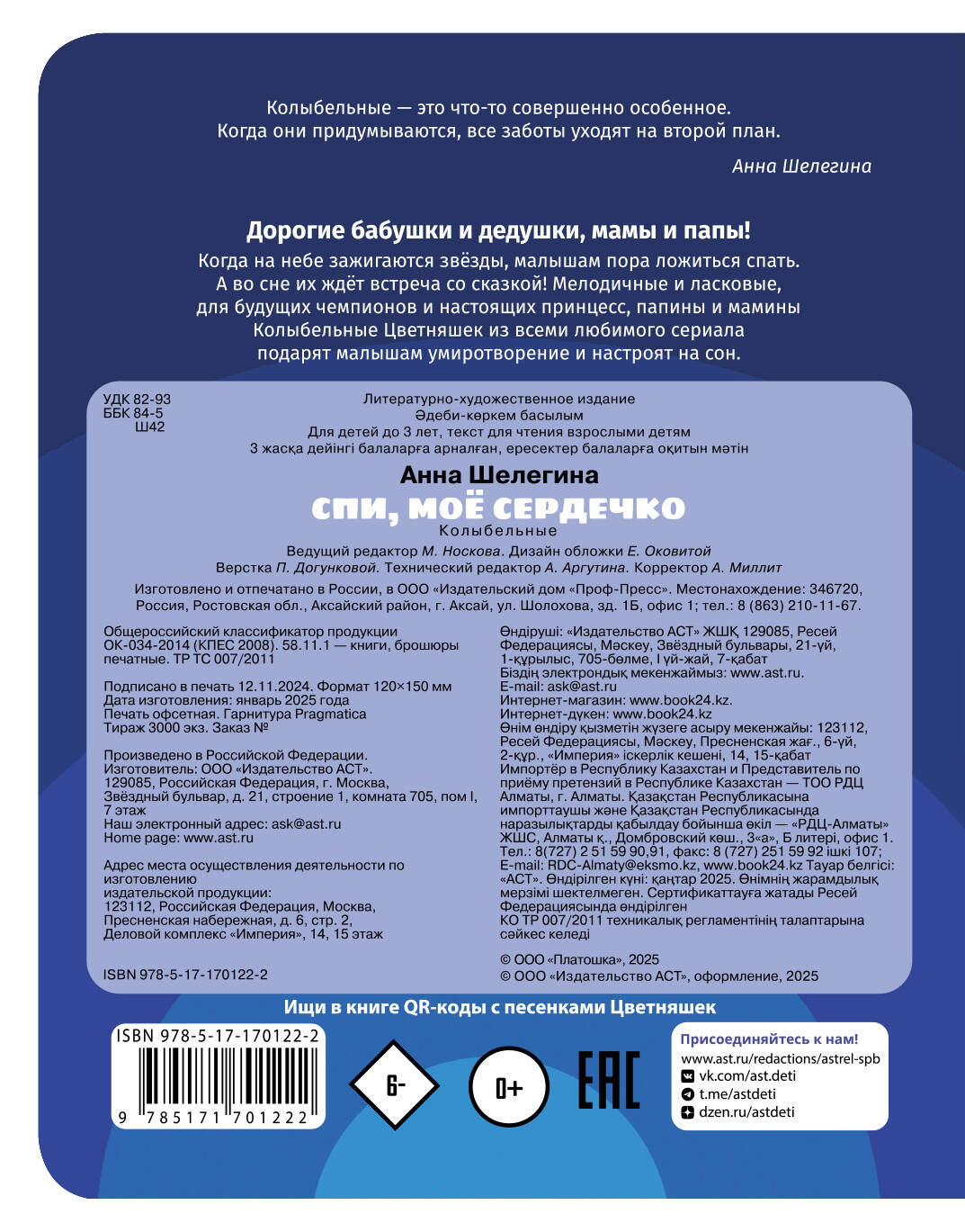 Современные красочные, забавные и запоминающиеся герои мультсериала Цветняшки покорили сердца миллионов малышей. Новые серии на телеканале Мультсериал, новая программа продвижения в 2025 году - Цветняшки на специальном детском меню в Шоколаднице, Цветняшки в уникальном проекте с Wildberries - конкурс, в котором покупатели книг и развивающих игрушек бренда могут выиграть 1 000 000 рублей.| Издательство | Издательство "АСТ" |