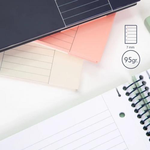 A4 formāta klade ar cietiem vākiem un spirāli. līniju. Augstas kvalitātes 95 g/m² papīrs, mikroperforēts un ar 4 caurumiem. Plēšanas iesācējs, lai atvieglotu katras lapas atdalīšanu. Stingrs kartona vāks spīdīgs. Elastīga un izturīga plastmasas spirāle (bez deformācijas). MILAN nata® 624 kolekcija, iedvesmojoties no MILAN dzēšgumiju oriģinālajām krāsām un dizaina, ražota Spānijā kopš 1918. gada.