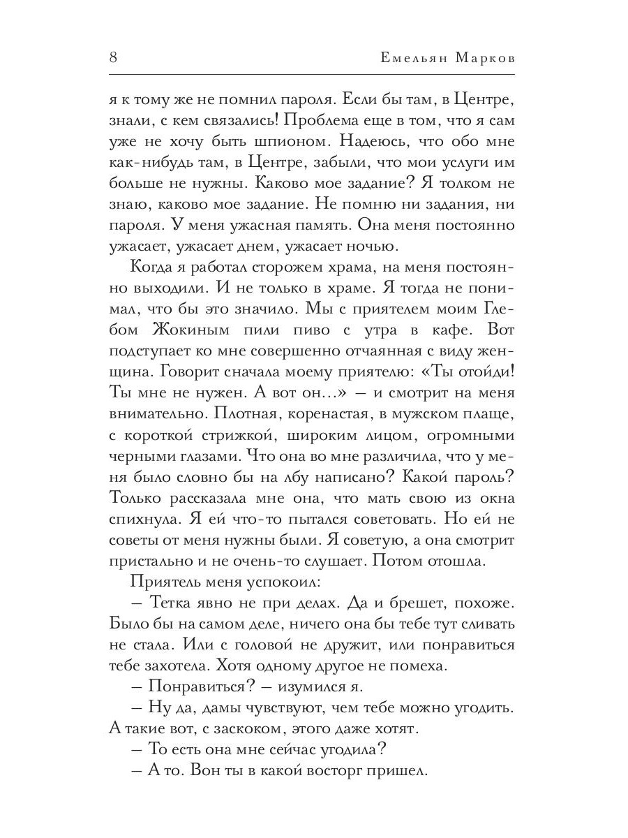 Москва и Санкт-Петербург. Жена и любовница. Писатель и его двойник. Книга о бывшем клоуне, а ныне библиотекаре, ощутившем себя резидентом, двойником и писателем. Главный герой ищет в библиотеке связную для прояснения собственного, непостижимого для него спецзадания. Сам того не желая, он все же постоянно возвращается к клоунаде, причем в самых для этого неподходящих ситуациях, как то: любовь, дружба, супружеский долг, исполнение служебных обязанностей.| Издательство | Т8 RUGRAM |