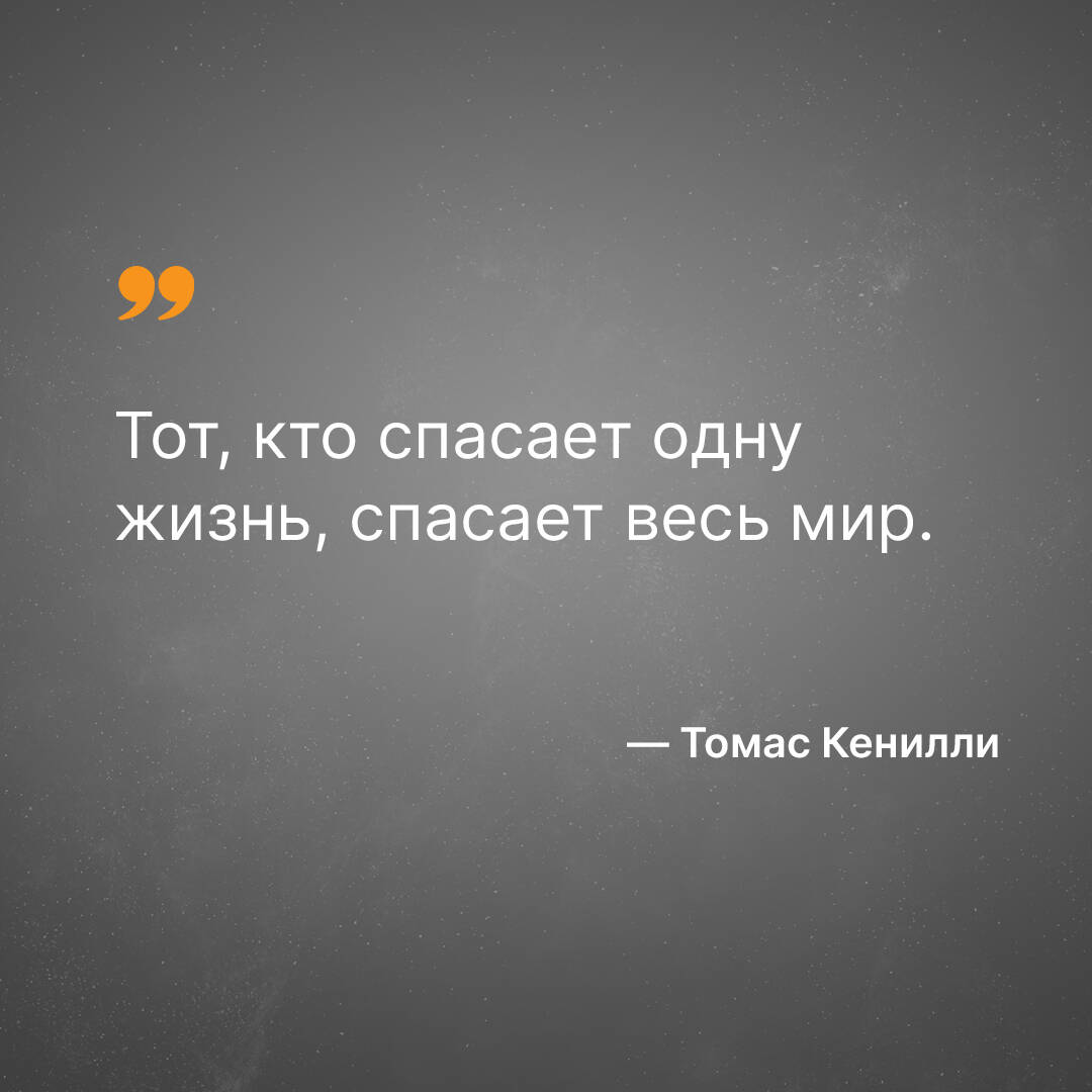 Томас Кенилли - австралийский писатель, драматург, автор документальной прозы. Самый известный роман «Список Шиндлера» получил Букеровскую премию в 1982 году. В 1993 году Стивен Спилберг снял по роману Томаса Кенилли фильм, который стал одним из самых значительных произведений мирового кинематографа и удостоен семи премий «Оскар». «Тот, кто спас единственную жизнь, спас весь мир» - эти слова из Талмуда написали заключенные на кольце, которое подарили своему спасителю - Оскару Шиндлеру. Человеку, который избавил от мученической смерти больше тысячи людей. «Немецкий бонвиван, ловкий делец, обаятельная личность, полная противоречий», - так пишет о своем герое Кенилли. Да, Оскар Шиндлер не был святым, но стал - Праведником Мира. О нем помнят не только те, кто обязан ему жизнью, не только их дети и внуки - нет в мире человека, который не слышал бы это имя и не преклонялся перед скромным мужеством Шиндлера.