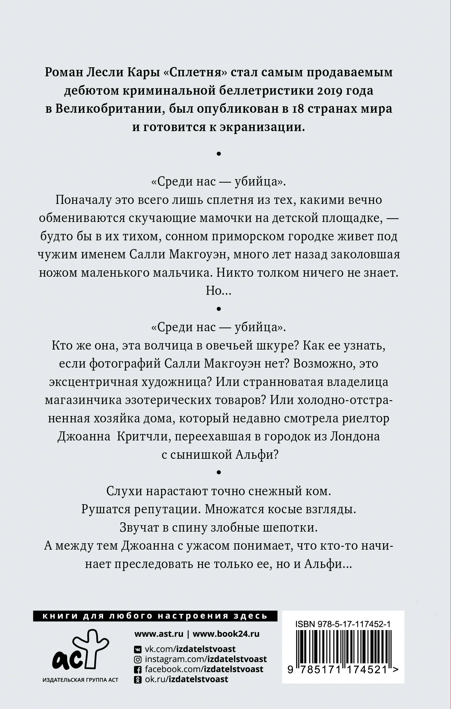 Для всех поклонников бестселлеров «Исчезнувшая» и «Девушка в поезде». Самый громкий детективный дебют Великобритании 2018 года. Роман переведён на 18 языков, а права на экранизацию куплены студией Cuba Pictures. Леденящая кровь история о паранойе, подозрениях, обвинениях и последствиях неумения держать язык за зубами.