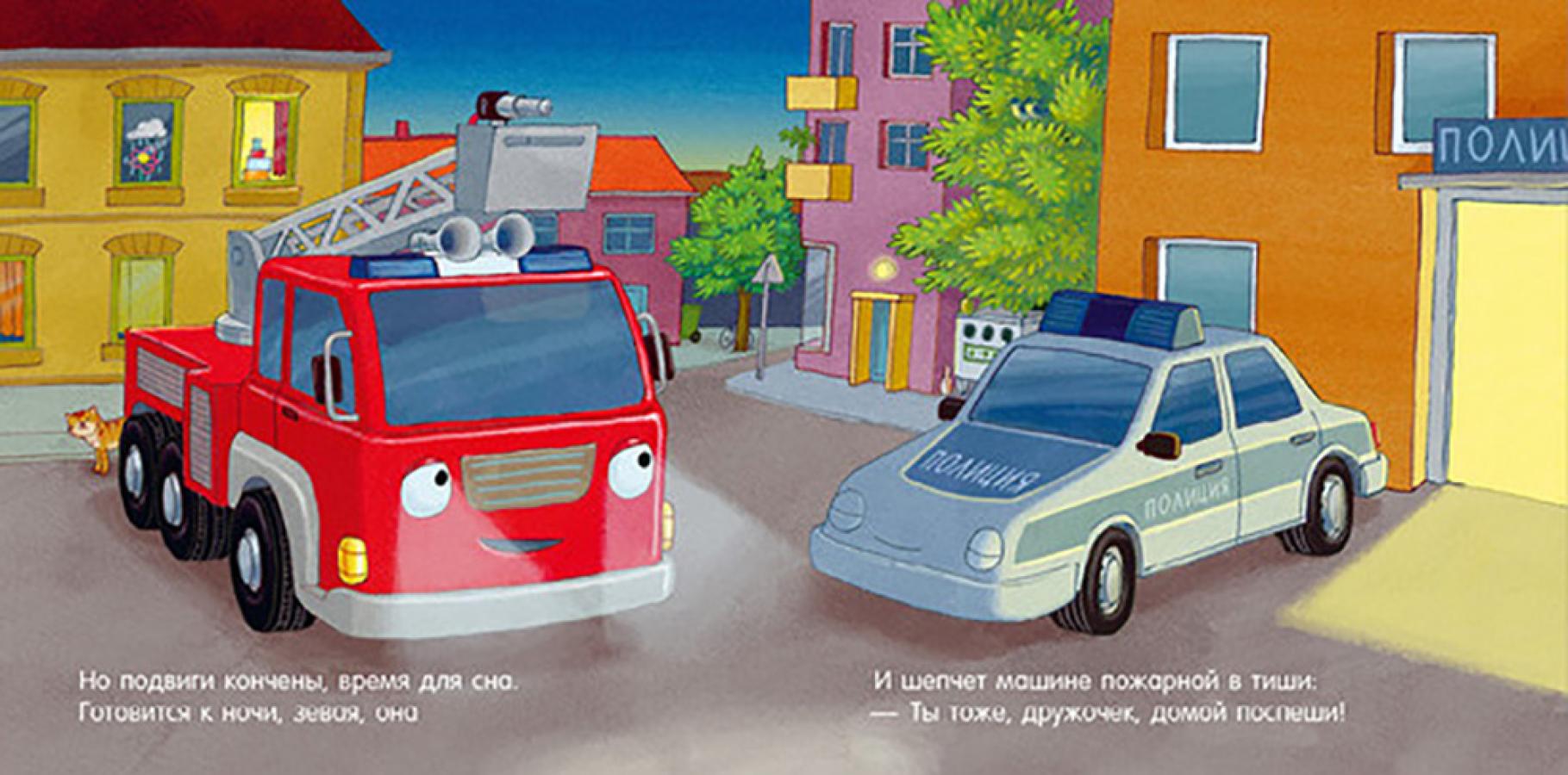 Спокойной ночи, пожарная машинка! Чудесная история о неутомимой пожарной машинке и её удивительных приключениях. Быстрее, чем ветер, быстрее, чем птица, На вызов машина пожарная мчится! Пожар ли случился, другая беда - Вода в красном баке готова всегда. Чудесная история о неутомимой пожарной машинке и её удивительных приключениях.| Издательство | Клевер-Медиа-Групп |