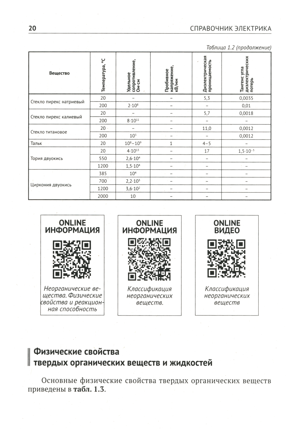 В интерактивном справочнике сделан упор на рассмотрение информации для современного электрика. Рассматриваются компоненты и материалы для электросети, принцип действия и характеристики электрооборудования, методики безопасной эксплуатации, основы проведения ремонта электротехники и многое другое. По тексту книги размещены QR-коды, предназначенные для мгновенного перехода к необходимым ресурсам (видео, справочной информации, калькуляторам), иллюстрирующих рассматриваемый материал. В необходимых случаях приводится ссылки на Интернет-ресурсы по соответствующей теме. Из приведенных сайтов можно почерпнуть дополнительные сведения по электрооборудованию, которые из соображений оптимизации объема справочника не были рассмотрены. По указанным адресам можно также определиться с приобретением соответствующей продукции, запасных частей. Книга продолжает ряд интерактивных справочников для профессиональных электриков и мастеров-ремонтников. Справочник будет полезен как инженерам, конструкторам, профессиональным электрикам, проводящим ремонт электротехники, так и домашним мастерам.| Издательство | Наука и техника |