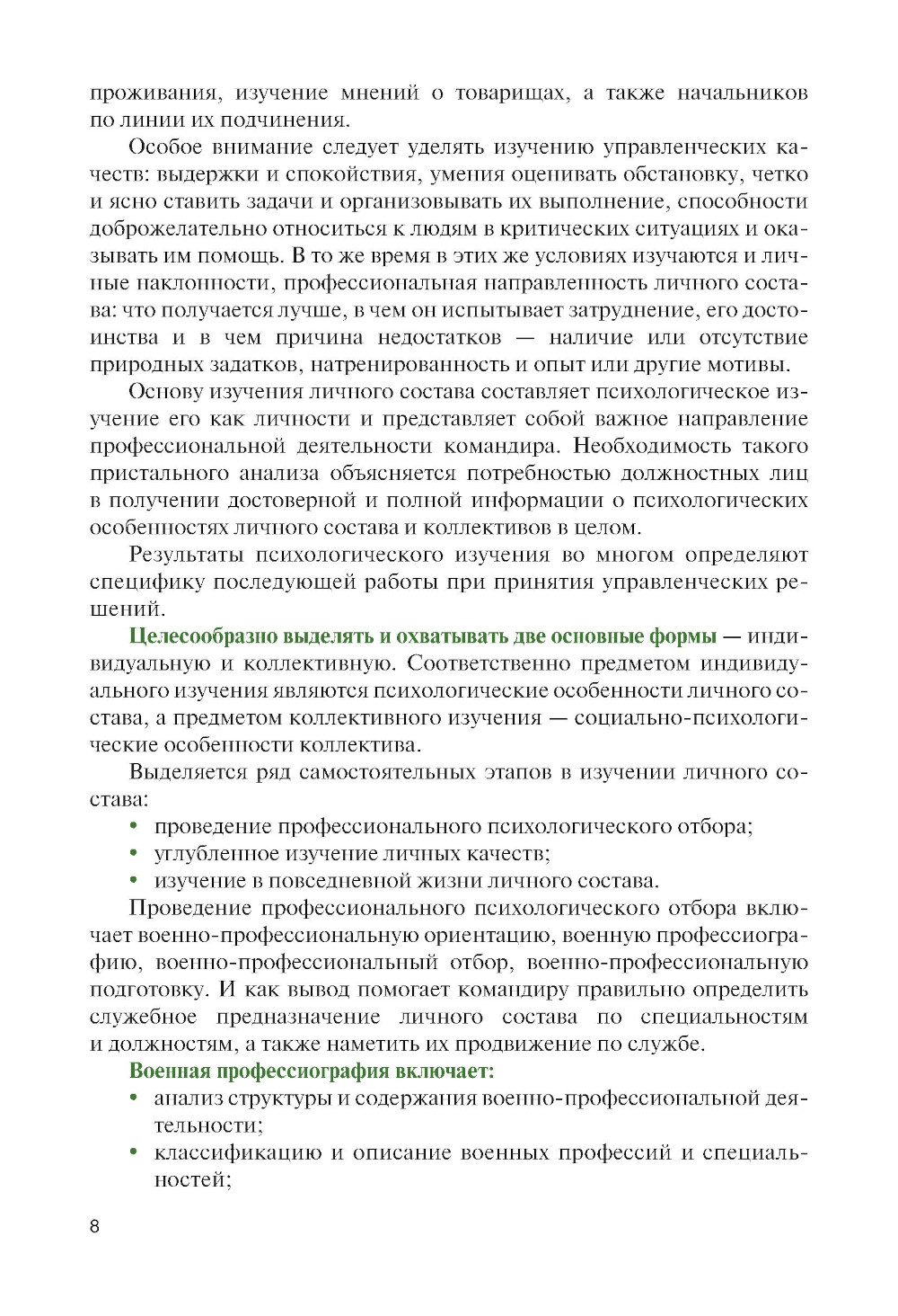 Излагаются основные положения по организации работы командира с личным составом в повседневной деятельности, разработанные с учетом опыта работы командира по подбору, обучению и воспитанию личного состава. Основная цель - попытка создать основу для формирования сегодня военного служебного человека государства. Соответствует ФГОС ВО последнего поколения. Для студентов, обучающихся на военных кафедрах и в учебных военных центрах гражданских вузов. Также может быть полезно в процессе обучения в военных высших и средних учебных заведениях; офицерам тактического звена ВС РФ и других министерств и ведомств России в повседневной деятельности.| Издательство | КноРус |