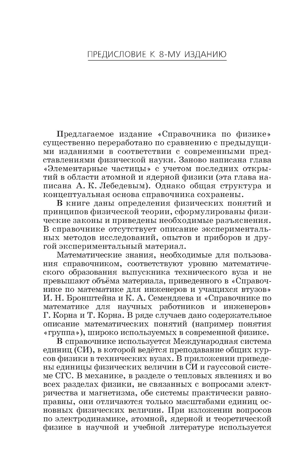 В справочнике даны определения основных физических понятий, кратко сформулированы физические законы и сущность описываемых ими явлений, приведены математические понятия, необходимые для пользования справочником. Данное издание существенно переработано с учетом новых достижений физической науки и вузовской программы курса физики. Справочник адресован инженерно-техническим работникам, студентам и аспирантам вузов и втузов, преподавателям высшей и средней школы. Может быть полезен всем, кто интересуется физикой. 8-е издание, переработанное и исправленное.