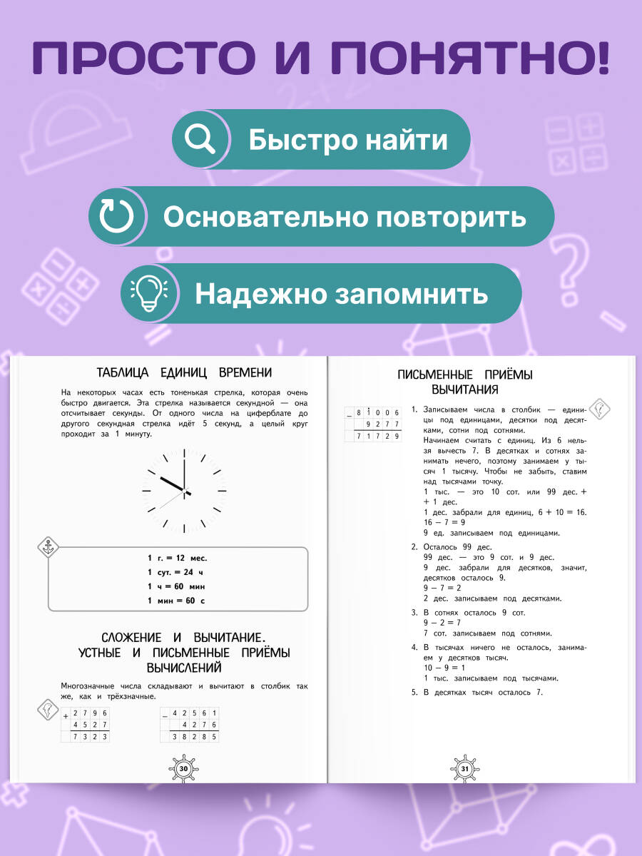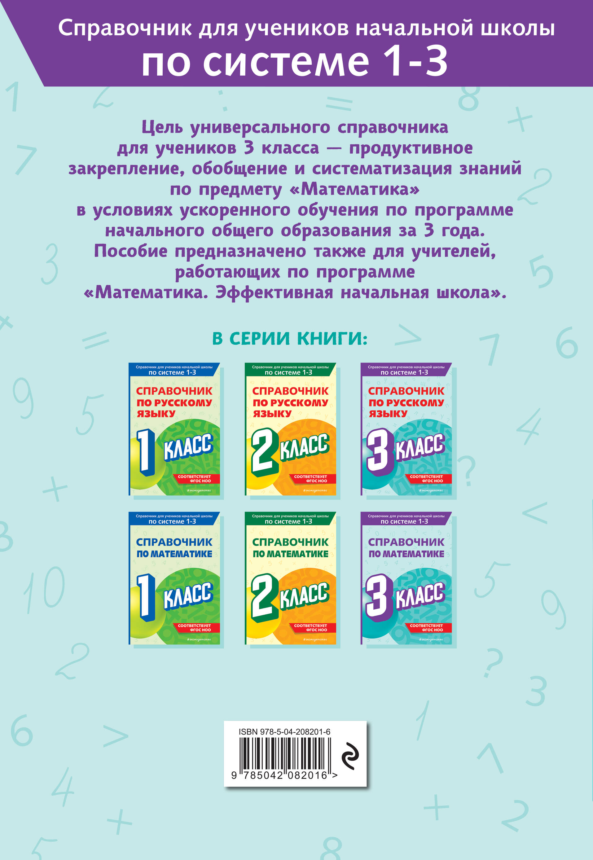 Справочник предназначен для младших школьников, обучающихся по ускоренной трёхлетней программе или по индивидуальному плану, а также для преподавателей, работающих по программе «Эффективная начальная школа». Главное требование к справочникам для учеников начальных классов - краткое и понятное изложение учебного материала. В данном пособии предельно доступно, в виде таблиц, схем, правил и примеров их применения, изложен весь курс математики за 3 класс по программе трёхлетнего обучения. Такая подача материала позволяет быстро найти нужную учебную информацию, основательно повторить и надёжно запомнить её. Современное и удобное в использовании пособие разработано в полном соответствии с требованиями ФГОС начального общего образования.| Издательство | ООО "Издательство "Эксмо" |