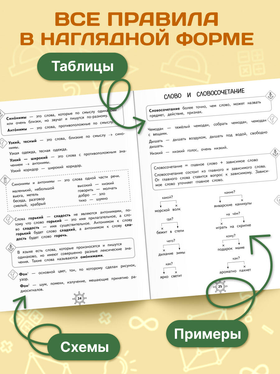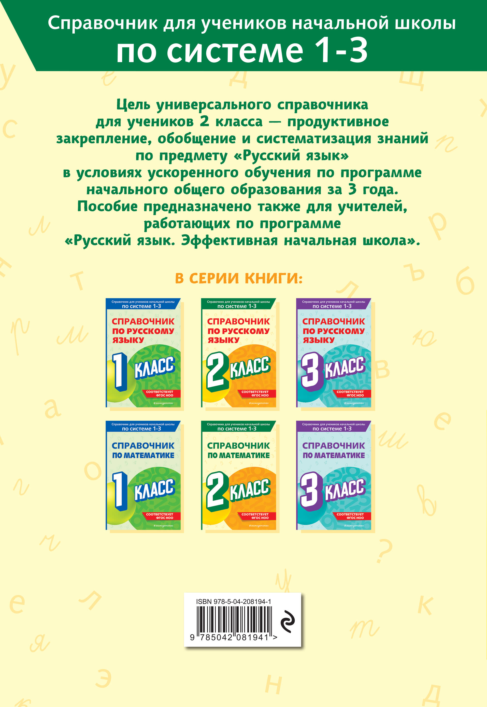 Справочник предназначен для младших школьников, обучающихся по ускоренной трёхлетней программе или по индивидуальному плану, а также для преподавателей, работающих по программе «Эффективная начальная школа». Главное требование к справочникам для учеников начальных классов - краткое и понятное изложение учебного материала. В данном пособии предельно доступно, в виде таблиц, схем, правил и примеров их применения, изложен весь курс русского языка за 2 класс по программе трёхлетнего обучения. Такая подача материала позволяет быстро найти нужную учебную информацию, основательно повторить и надёжно запомнить её. Современное и удобное в использовании пособие разработано в полном соответствии с требованиями ФГОС начального общего образования.| Издательство | ООО "Издательство "Эксмо" |